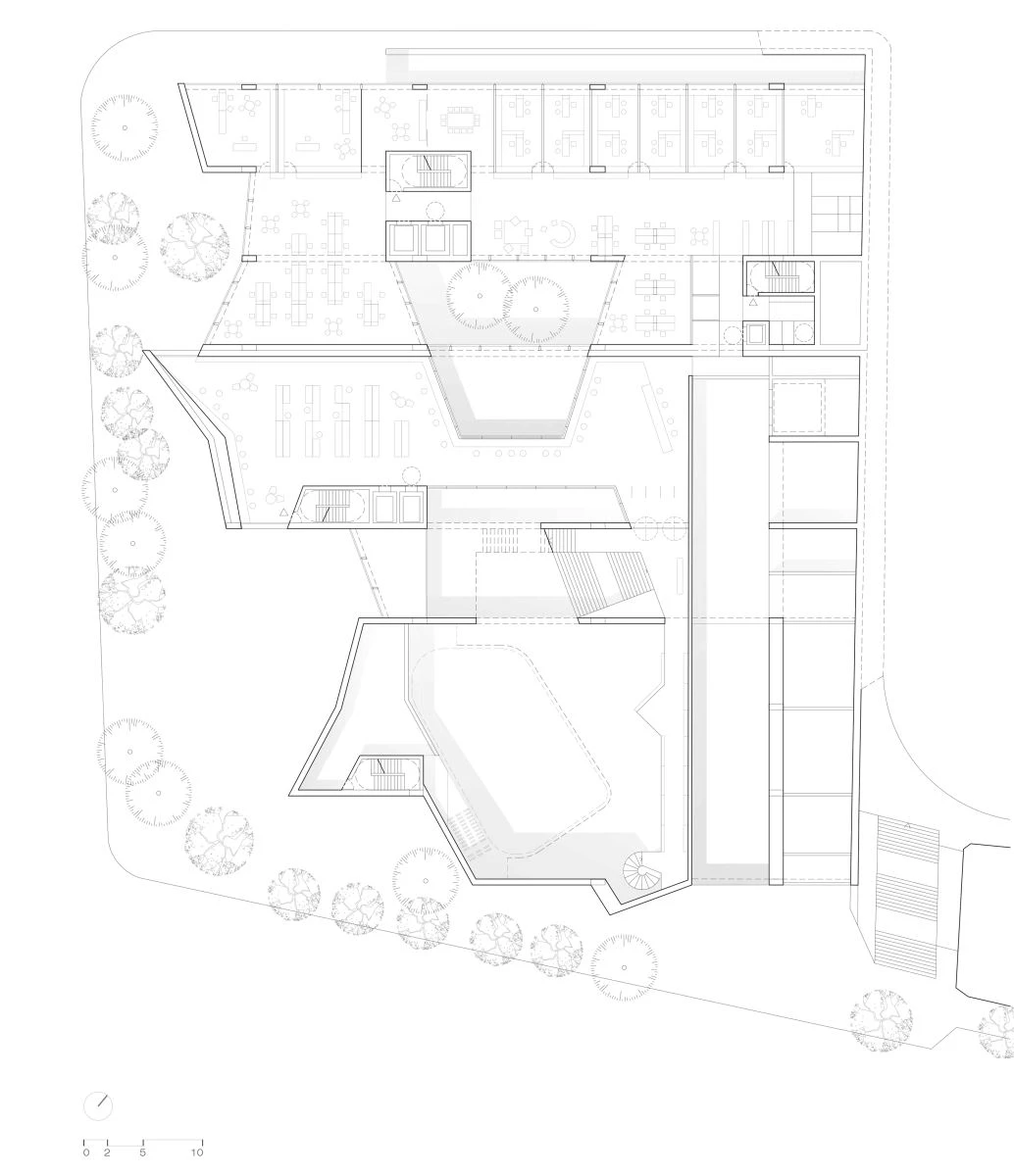 The jury, which included Fuensanta Nieto, has considered the project's uniqueness and its on-target dialogue with the urban context. The cultural facility expresses its representative role with volumes which are sensitive to the surroundings, engaging with it. Towards Calle Casimiro Sáinz, for example, it fragments into strips, like strata, with a system of stepped bars adapting to urbanistic restrictiions, forming two entrance plazas independent of the museum and the administrative building.