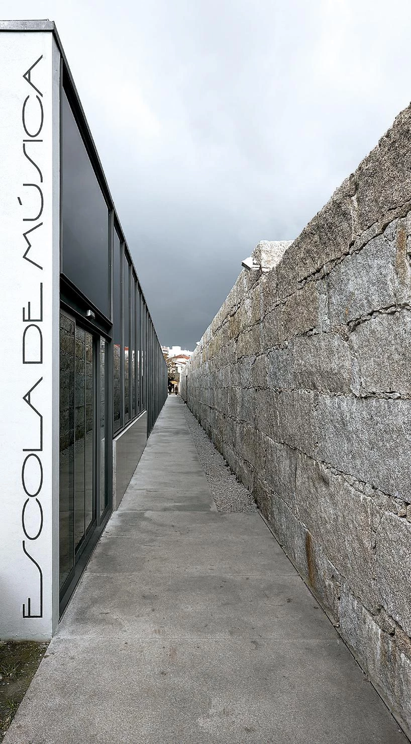 The school of music, for its part, takes up a prismatic volume parallel to the stone wall of the northeast side of the market. The program develops on two floors: the school proper on ground floor, and an underground auditorium with capacity for 157 spectators. Thanks to its position on ground floor next to the access lobby, the auditorium is an autonomous piece that can be used independently from the school. Large windows light up the hall’s interior, which presents a ceramic tile finish.
