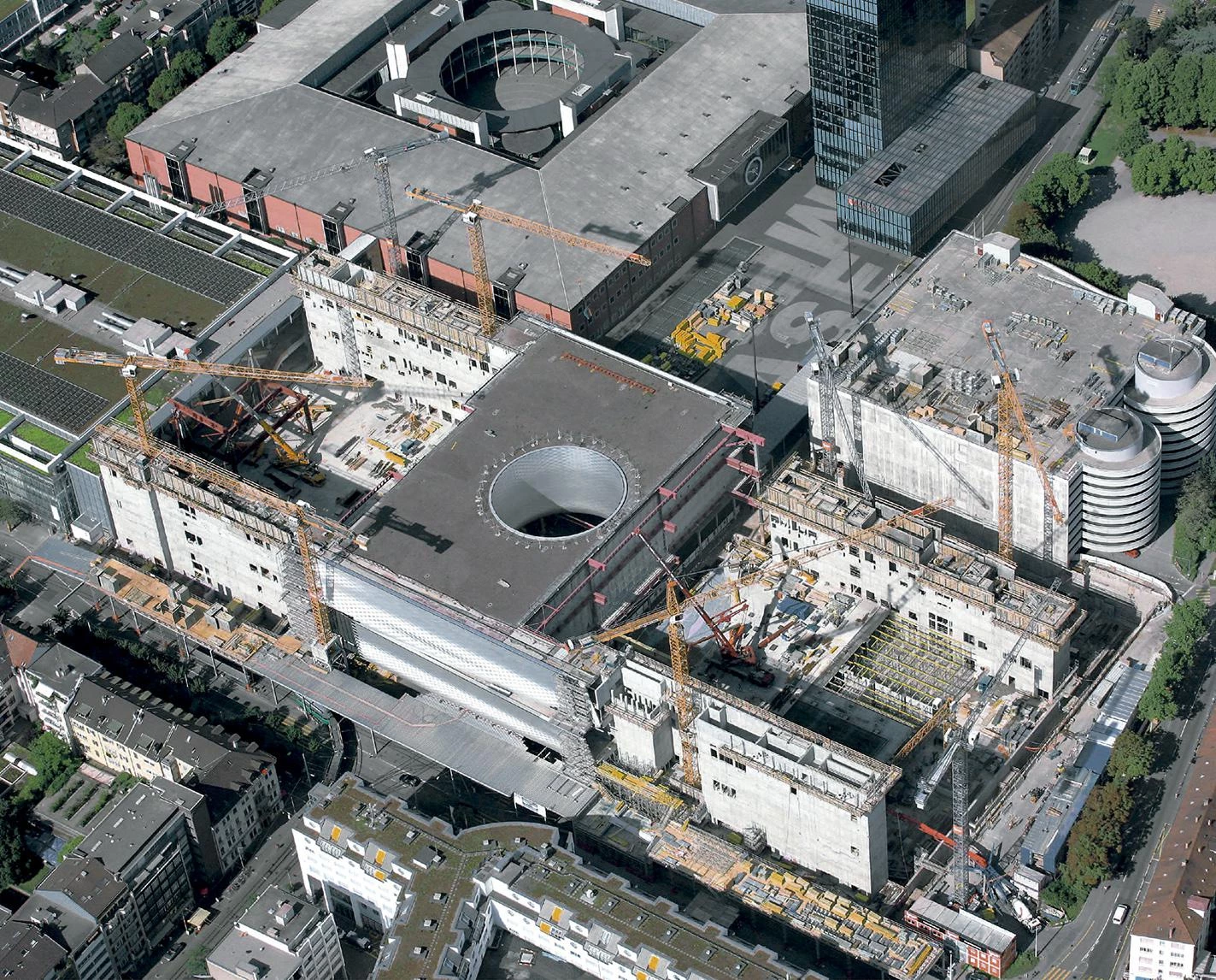 AG, HRS Hauser Rutishauser Suter AG (planeamiento general general planning); Herzog & de Meuron (planeamiento de arquitectura architect planning); Burckhardt + Partner AG (dirección de obra, construcción construction management, architect construction); ARGE Gruner AG/ Ernst Basler + Partner AG, Ribi + Blum AG, Gruner AG, WITO Engineering GmbH (estructuras structural engineering); Lippuner Energie und Metallbautechnik AG, Kurt Plodeck ECS, Rechberger Huustechnik AG, ARGE Scherler AG, Aicher de Martin Zweng AG, Herzog Kull Group AG (instalaciones MEP and HVAC engineering); Gruner AG (seguridad y protección antiincendios safety and fire protection); Feroplan Eng. AG (fachada facade); Bartenbach GmbH (iluminación lighting); Vogt, Burger & Partner AG (paisajismo landscape design); Rapp Infra (logística y tráfico logistics and traffic planning); Pfirter + Nyfeler AG (geología geology); Zimmermann + Leuthe GmbH (energía y física energy and physics)