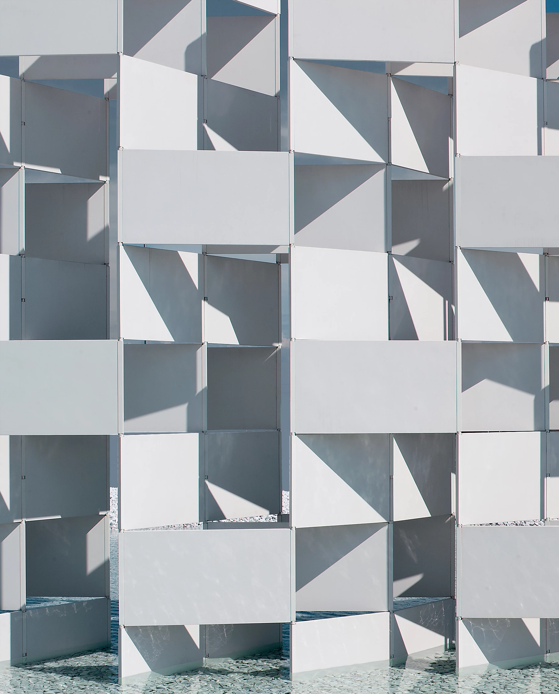 This monument goes up on a roundabout in Casalgrande, an area of Reggio Emilia known for its traditional ceramic industry. Casalgrande Padana, a leading company in the field, comissioned the design of an installation for a roundabout, approachable only by car. The proposal, a wall rising 12 meters high and 1.7 meters on its wider part, separates the space into two, emphasizing its dual character. Avoiding the idea of monument as static element, the project experiments with dynamic principles such as time, movement and sequential perception. By aligning the direction of the ceramic wall with the road that leads to it, when reaching the site drivers will perceive just a roundabout divided by a vertical line, and only when going around it can they appreciate it in all its extension and complexity. The main material, ceramic, is used as a structural element beyond its traditional role of cladding thanks to a simple system of white lacquered ceramic pieces of 1200x600x14 millimeters. A bold trace nuanced by a slight vibration generates a blurred cloud structure, which thereby inspires the project’s name, and transforms a banal context into a place that offers a new sensory experience.