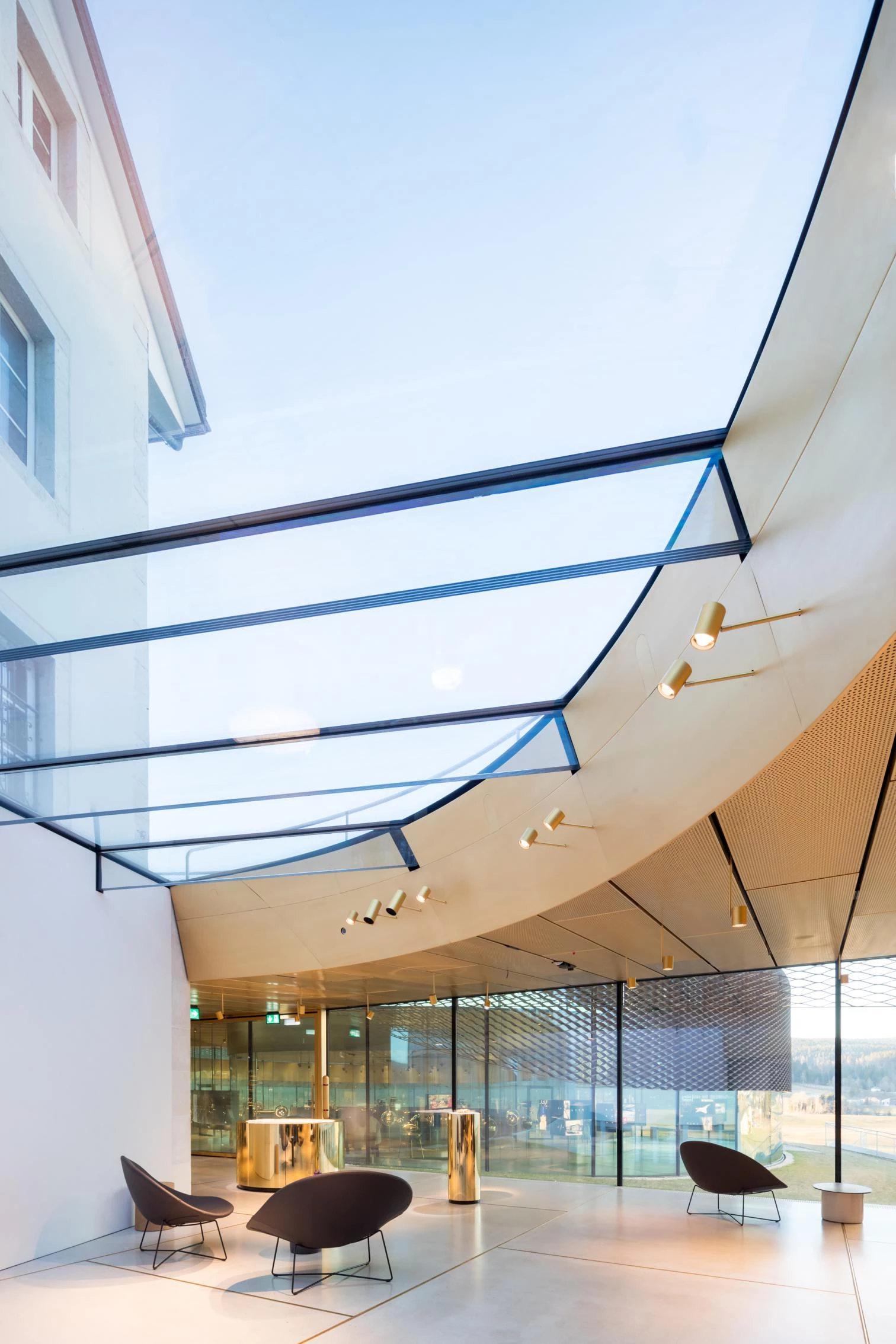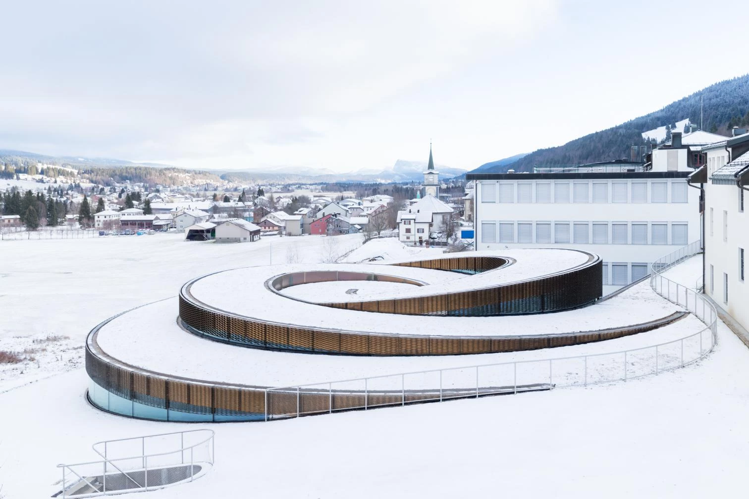 The Musée Atelier Audemars Piguet is located within the famous luxury watch manufacturer’s historical complex of workshops and factories. It reflects the innovative spirit of the firm – which has successfully maintained its autonomy as a family enterprise – and is rooted in the culture and nature of La Vallée de Joux. The layout is based on a visitor route that presents the history and process of watchmaking and threads the different parts of the program in a continuous sequence. This strategy is materialized in a half-buried double spiral that is striking yet subtle, functional yet sculptural.
