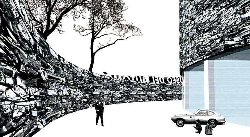 The facade consists of ‘ashlars’ made with the recycled remains of the objects on display inside the building: car bodyworks, which, at the end of their useful lives, and after having the engine and other recoverable parts removed, will be cleaned and crushed to become an essential part of the cladding of a building. The use of compacted cars to build the facade not only entails applying an element aimed to stimulate visitors’ memories, but represents a proactive attitude towards the recycling process, the creative reuse of discards.
