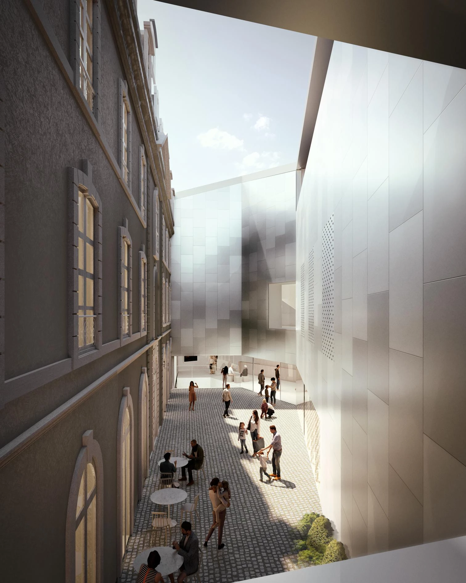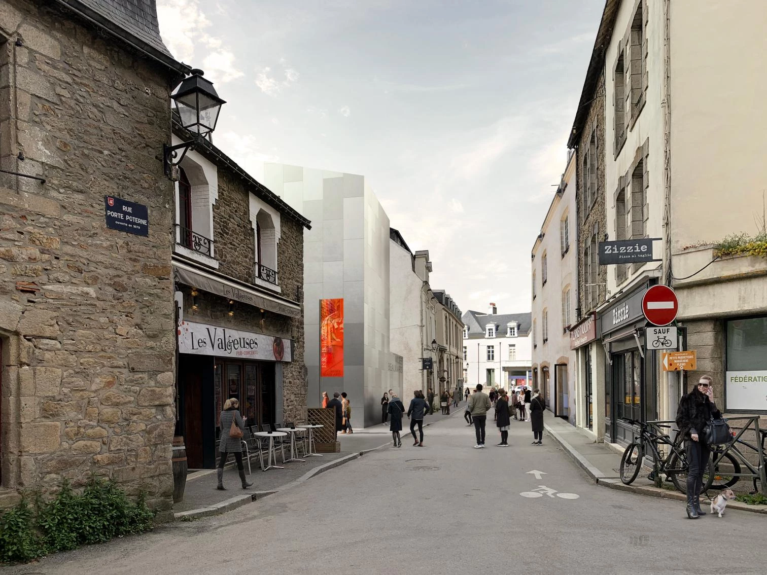 With a total area of 2,700 square meters, the project restores and refurbishes the Château de l’Hermine – built in the 19th century over the ruins of the 14th-century town wall; and enlarges the premises through volumes materialized in a metallic skin. The new extension forms a public space within the rampart, between the medieval perimeter and the historical center, by means of a longitudinal volume that adapts the pitches of its roofs to the irregular geometry of the surrounding context. The intervention respects the original architecture, dialogues with the historical buildings, and transforms the museum’s image in the city.