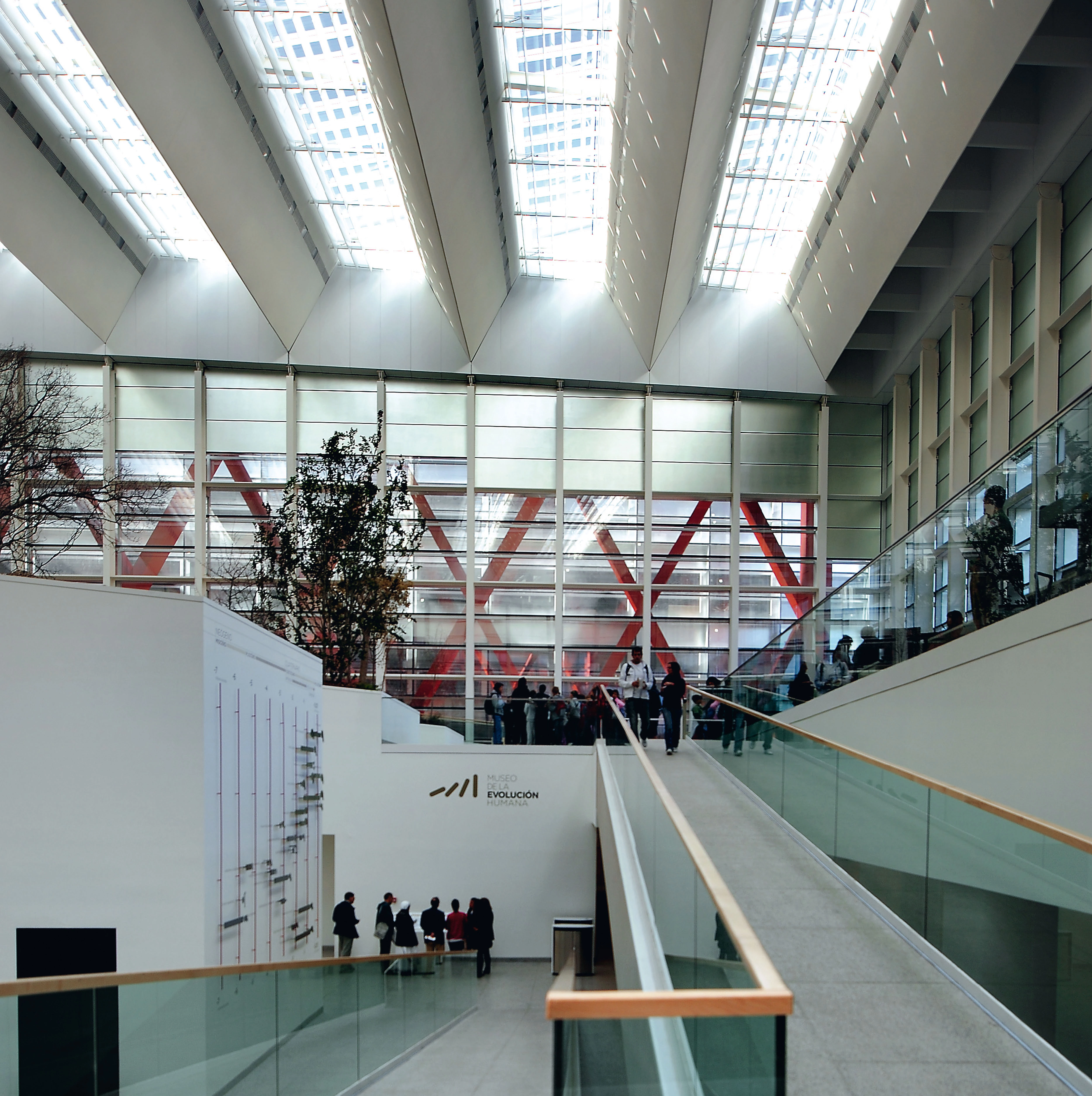 With an area of 13,400 square meters, the Museum of Human Evolution is designed as a structural basket protecting a glass volume whose interior contains several fragments of natural landscape.