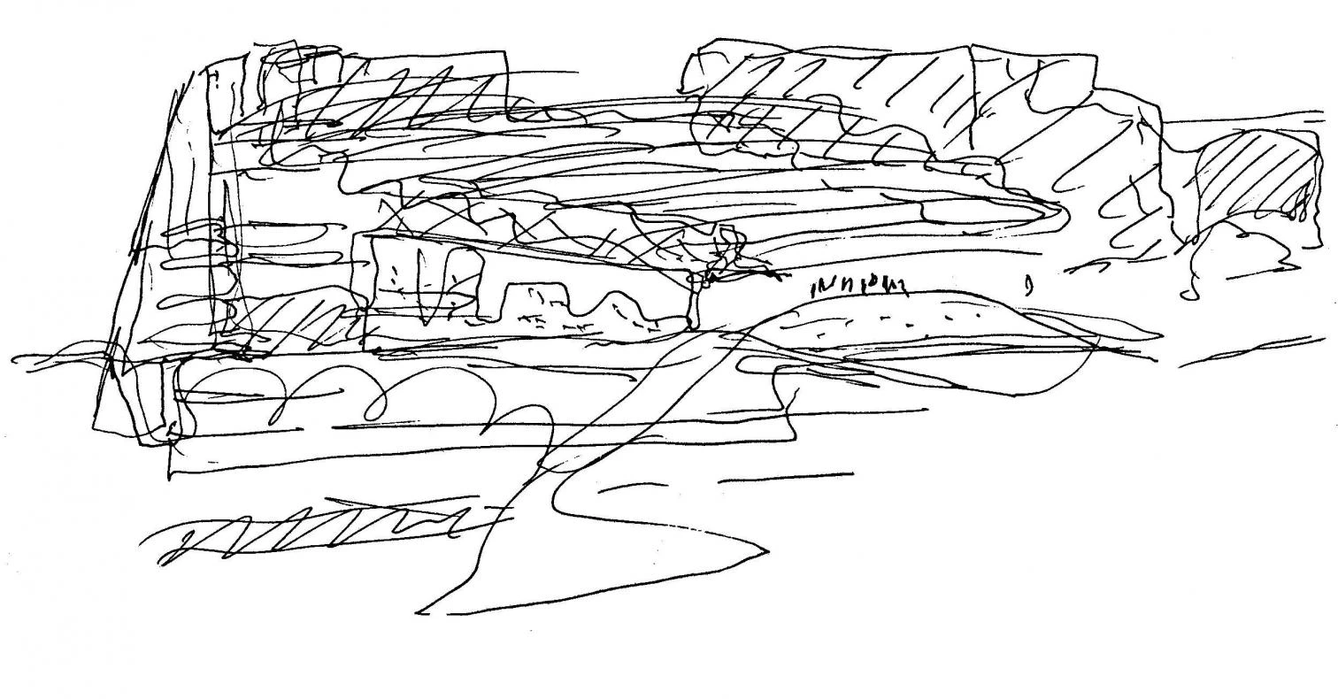 The new cultural center is linked to the Atapuerca archaeological site, the reason for its existence, by the Arlanzón River. Located along its banks, the three buildings of the complex rise over a series of ‘fluvial terraces’.