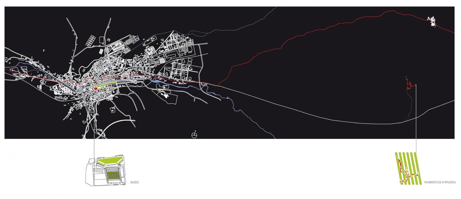 Located on the riverbanks of the Arlanzón as it flows through Burgos, the new complex has a material and fluvial relationship with the Atapuerca site. The paleontological and archaeological findings of Atapuerca were so considerable that it was necessary to build a space to promote their study as well as to display them and make them known to the wider public. The new complex gathers three volumes: the Museum of Human Evolution, the National Research Center on Human Evolution and the Exhibitions and Congress Center.