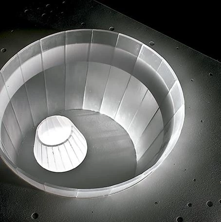 The geometric abstraction implicit in every architectural work appears in the proposal with the boldness of a contemporary installation in the public space, transformed into an apparently random sequence of conical intersections derived from a single, virtual three-dimensional figure. Curved glass surfaces with a continuous silkscreen print filter light towards the interior and, inversely, illuminate the square with artificial light at night. A cultural institution like the Joanneum Museum, on which the Kunsthaus Graz is dependent, thus expresses the changing relationship between art and city. The square that centralizes the access to the museums is an unusual intervention in the urban space: a bet on the common action between plastic arts and architecture that will incorporate specific installations in collaboration with contemporary artists. The new extension goes almost unnoticed, concealed beneath the pavement that connects the historical buildings, as a materialization of a perforated horizon that expresses, and not only literally, that the depth of an architectural work can reside, unexpectedly, on its surface.