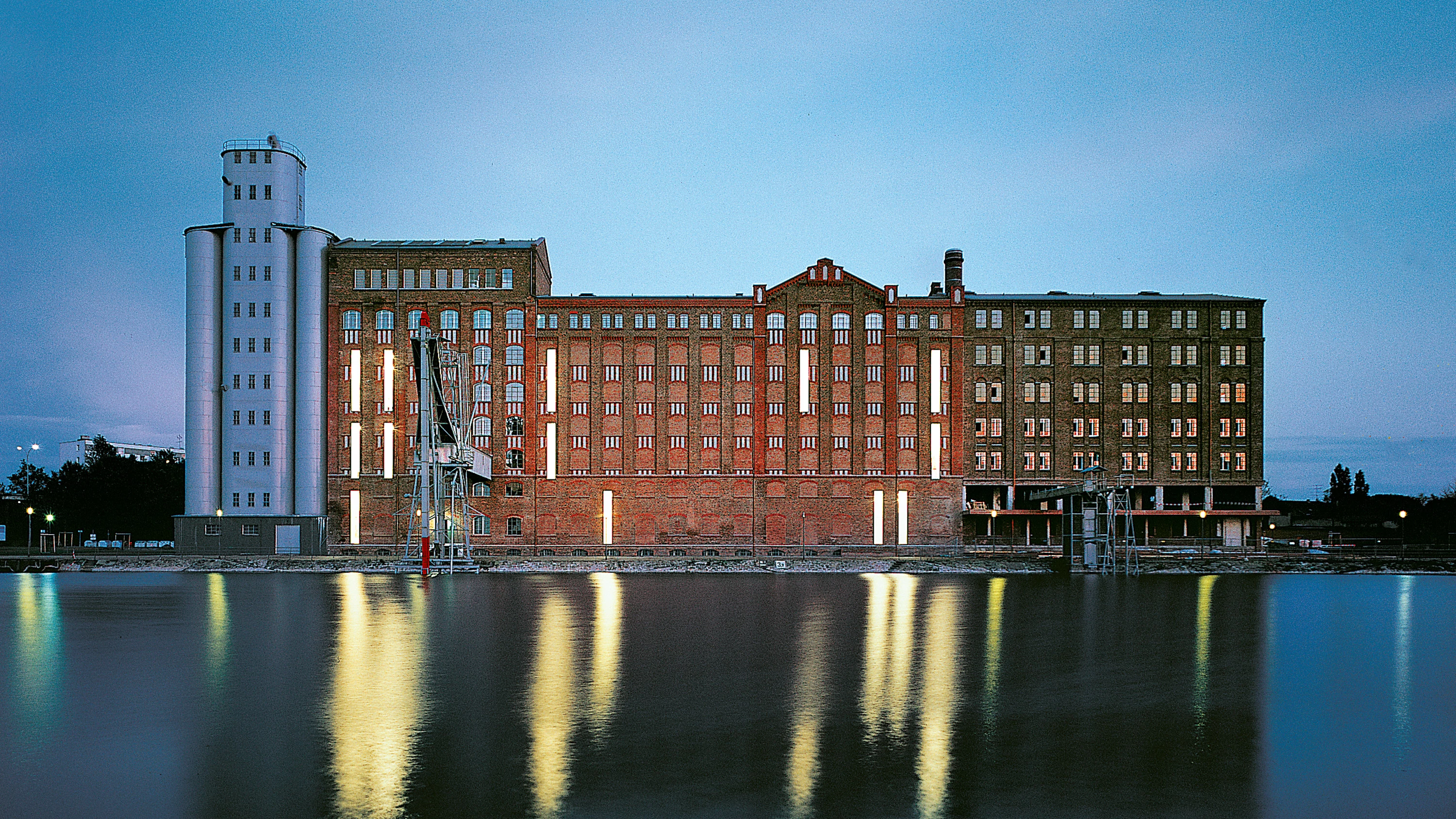 Following the crisis in the German mining industry which left its mark on the Rhur basin – a desolate scene of pollution and unemployment – Duisburg is one of the areas that has benefitted most from the steps taken to revive the landscape and the economy. New architecture, through initiatives like IBA of Emscher Park, has provided the icons used to identify this social and physical recovery of the environment. In Duisburg, Norman Foster was responsible for the rezoning plan at the Microelectronics Centre before later setting the guidelines for the regeneration of the city’s inland port. This river environment, recovered for a city that previously took little advantage of its strategic location between the Rhine and Rhur Rivers, is the site of the former Küppersmühle factory, now chosen to house the eclectic Grothe collection of post-Second World War German art.