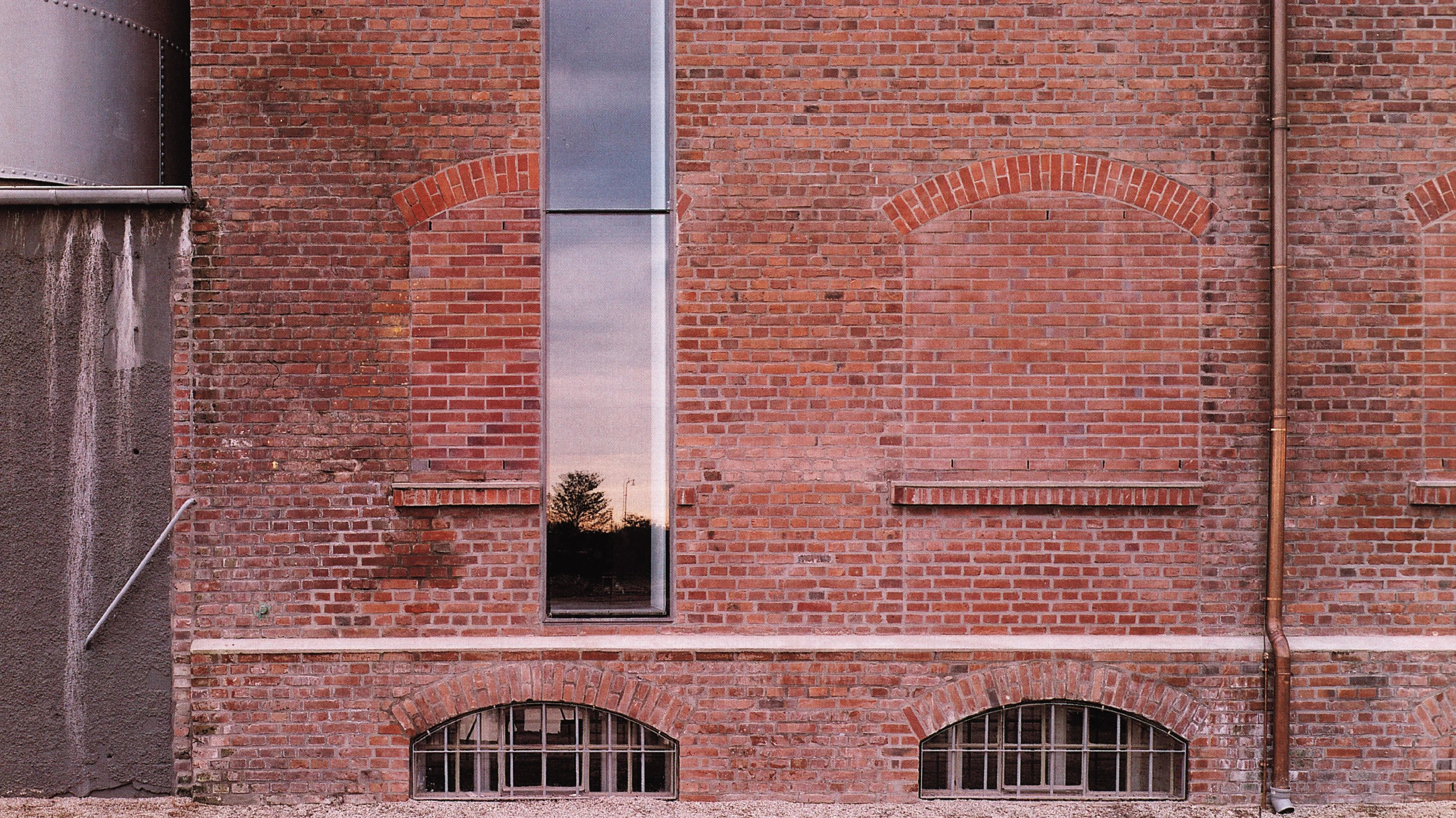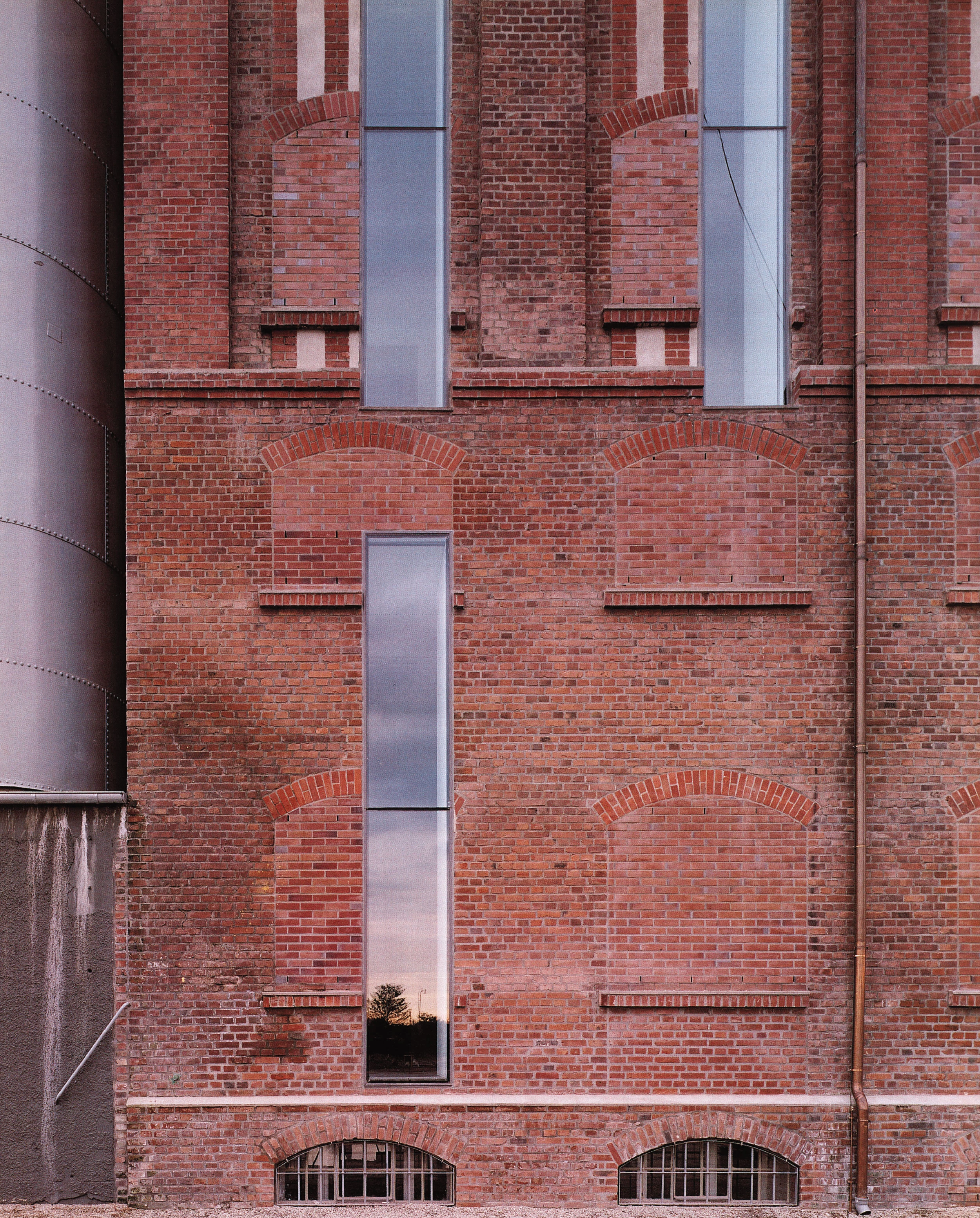 La construcción original de los hermanos Kiefer y Joseph Weiss, levantada entre 1908 y 1916, constituye en este nuevo contexto un hito del paisaje metropolitano. La rehabilitación del Küppersmühle es posterior al proyecto para la Tate Gallery londinense —otro museo habilitado en un edificio industrial— y toma los muros existentes como estructura sobre la que arañar las señales de nuestro tiempo. La intervención para alojar casi 5.000 metros cuadrados de exposición, otros tantos de servicios complementarios y más de 1.000 metros cuadrados dedicados a la gastronomía, se ha abordado como una operación de colmatación y cirugía. Buscando potenciar la densidad del edificio existente —una composición aditiva de volúmenes de ladrillo y silos cilindricos de chapa roblonada— , los vanos del cuerpo central se tapian con piezas del mismo color y textura. Sobre el prisma denso y cerámico así obtenido se rasgan una serie de ventanas a la vez que se eliminan algunos forjados para adecuar el interior fabril a su nueva función expositiva. De formato vertical, las incisiones en el alzado, que retoman la experiencia previa en el estudio de Rémy Zaugg en Mulhouse, se ensayaron en maquetas para no desvirtuar el espacio introspectivo y sosegado requerido para la colección. La actuación propuesta —independiente del orden de fachada existente— se superpone al edificio de principios de siglo como una página más de historia, con la lógica que imponen las nuevas dimensiones permitidas por los materiales y las técnicas contemporáneas. Así, las obras de Polke, Baselitz, Richter o Penck pueden ser contempladas en galerías de cinco o seis metros de altura, que incorporan a través de los nuevos huecos la presencia animada de la luz del día.
