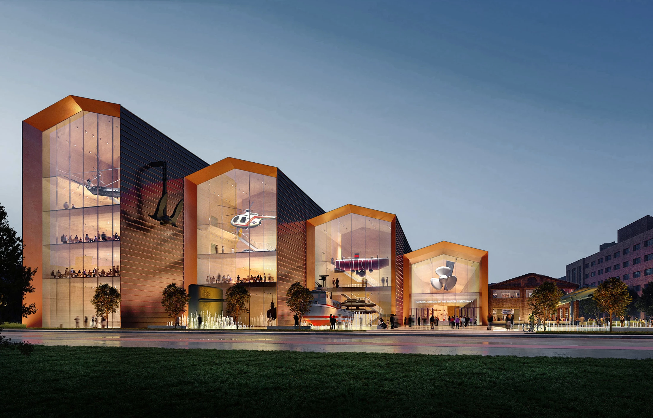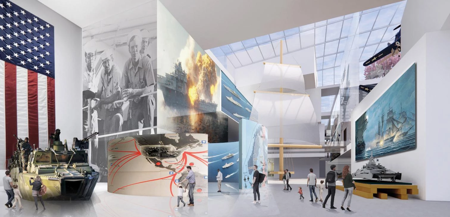 Bjarke Ingels Group (BIG), Frank Gehry Partners, Perkins & Will, Quinn Evans, and DLR Group have been selected as finalists from a pool of 80 teams that have taken part in a competition to build the future National Museum of the United States Navy at the US Navy Yards in Washington, DC. The brief specified a ‘modern’ building as home for the institution’s collections, with six main areas differentiated.