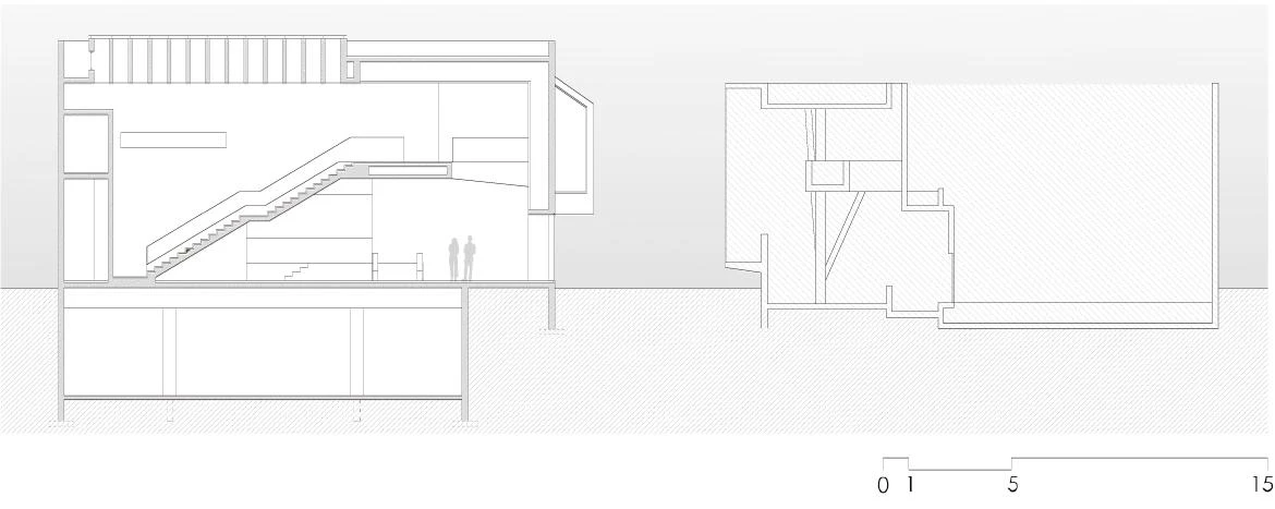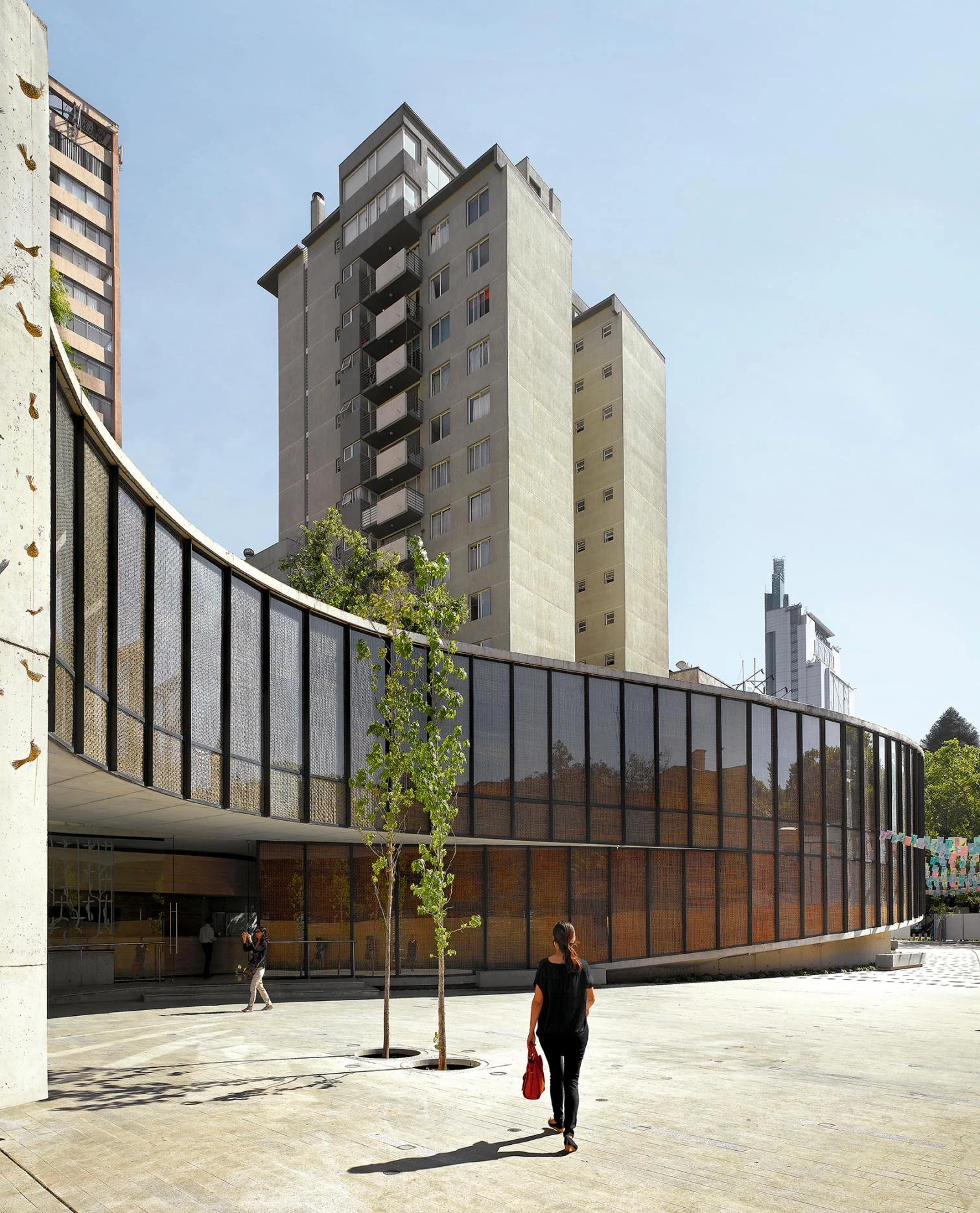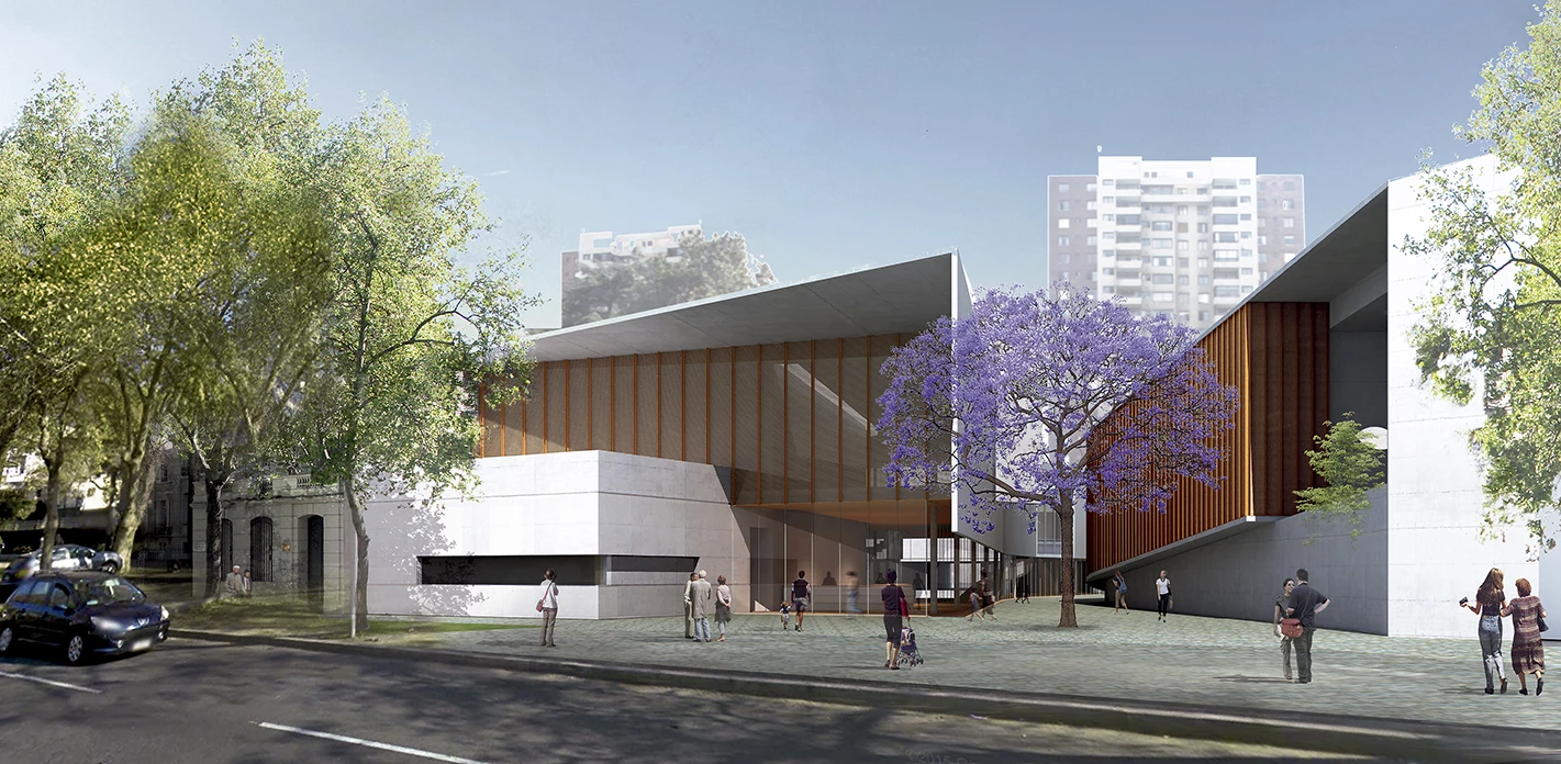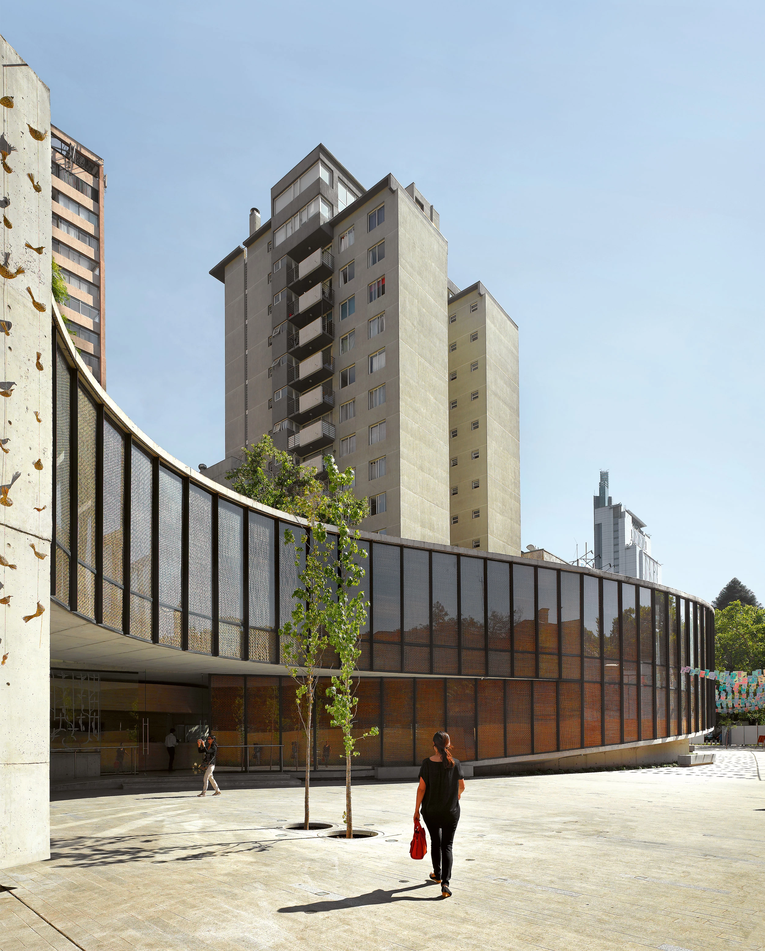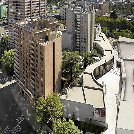 The building is located on the edges of the historic center, in the San Borja neighborhood, an urban area that has gone from being a model of compact city to a city of isolated towers. The terrain available, which two cultural institutions had to share – the Violeta Parra Museum and the Argentinian Cultural Center –, connects two main streets within the urban fabric. Since the studio had received the commission for both projects, building a pedestrian promenade between both seemed to be the right solution.