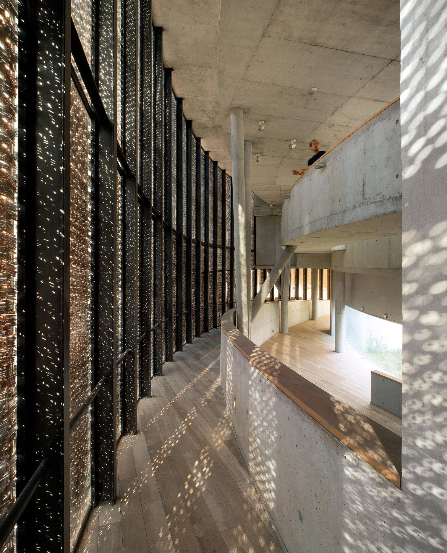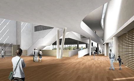 The compression and expansion of the facade format throughout the route creates a silhouette of variable width that controls transit times. Within this itinerary, the access to the museum is defined by a large concavity that suggests a pause en route. The main facade, which receives a soft light from the south, consists of thermopanels whose interior cavity is housed in wicker fabric, which filters in light while creating a private and protected interior space. From the outside, this wicker mesh speaks of the museum’s interior world of craftsmanship.