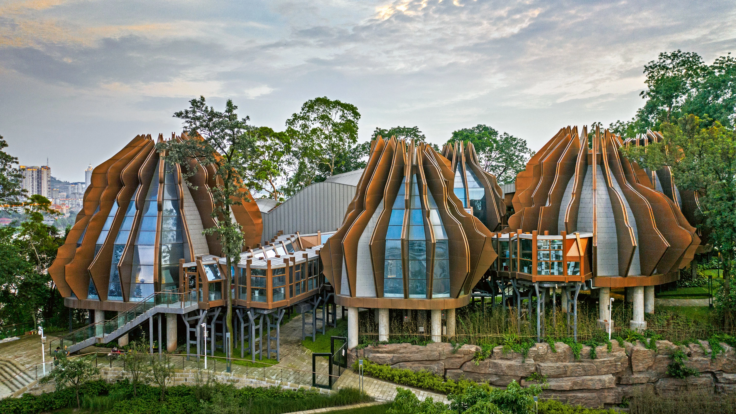 The site is located at the top of Dong Tong Lu, Yuan mountain, west of Xi Lin monastery, and south of the Tuo River. The museum should grow from the existing tea house, refurbished during the process, and a series of pavilions arranged at different levels following the terrain’s contours. The formal development of the project seeks to integrate the cultural essence of the East and West and generate a building able to represent the past and the future at the same time. So, while the motifs of Zhang Daqian’s paintings find their reflection in the laminated bamboo structures that compose the vertical sections of the pavilions, a portrait of Picasso by the Chinese artist inspired the floor plan. This symbiosis pays tribute not only to the friendship between both masters, but also tries to establish a dialogue between the cities where each was born: Neijiang and Málaga, creating a symbolic bridge between their legacies... [+]