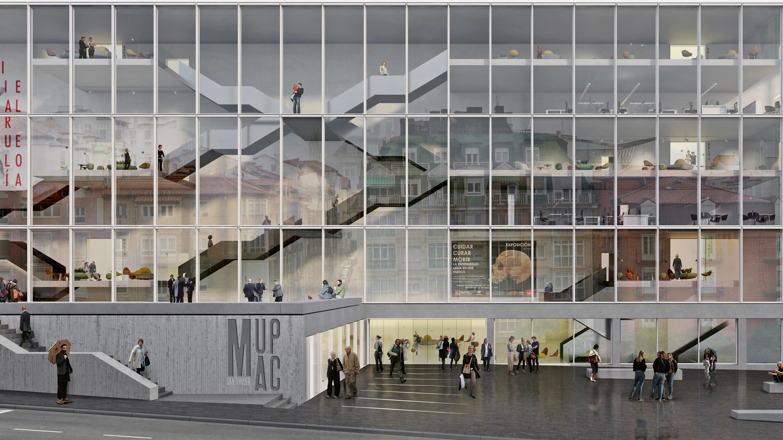 Three longitudinal bands, each containing different programs, organize the new volume and free up space to create a new square whose backdrop is a transparent facade that lets the city observe the circulations and main functions of the building...