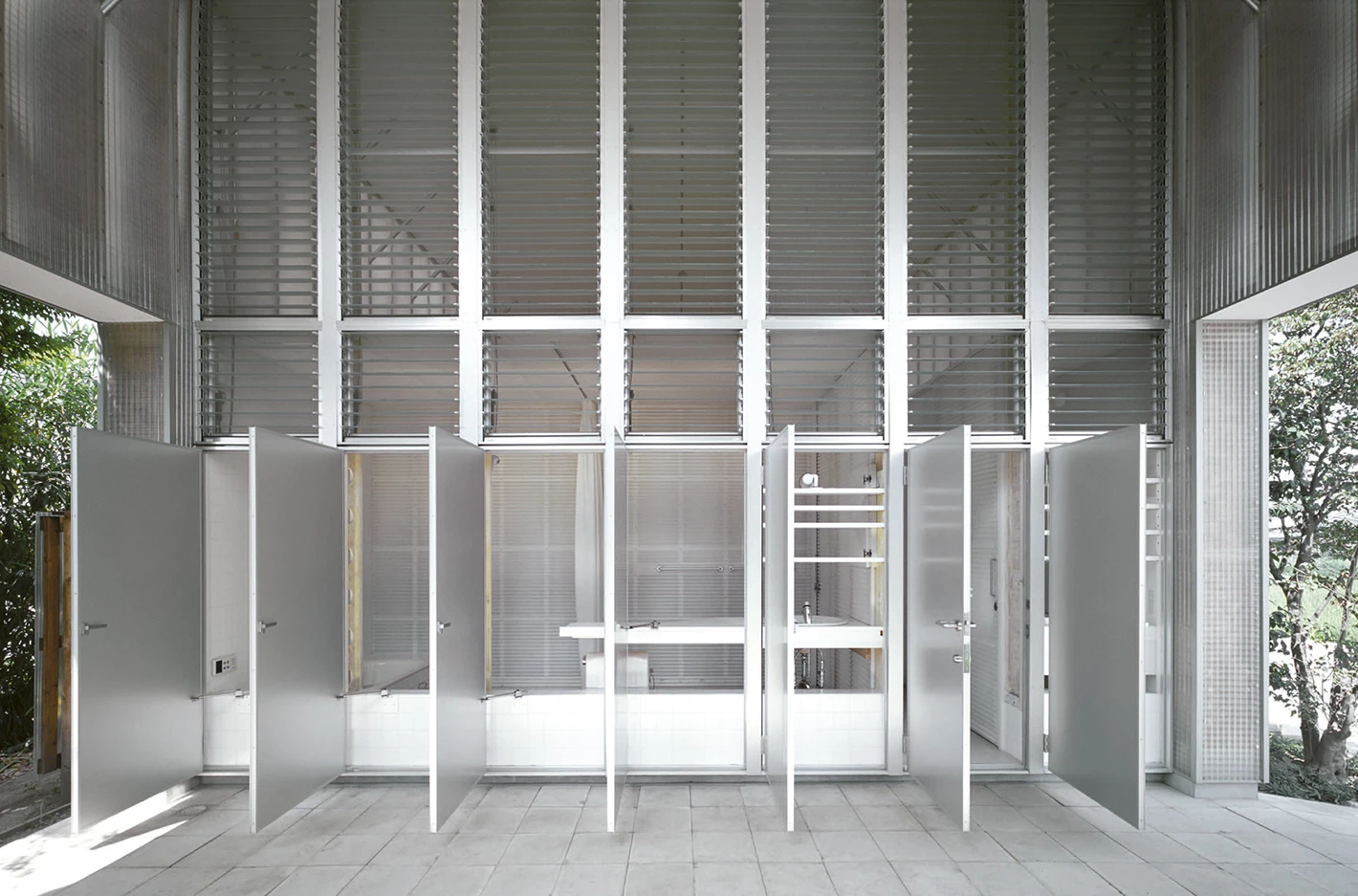 Located by a river and surrounded by fields peppered with greenhouses, the Naked House addresses the client’s request for “a house that give us all the freedom to carry out individual activities in a shared atmosphere, within a united family.”