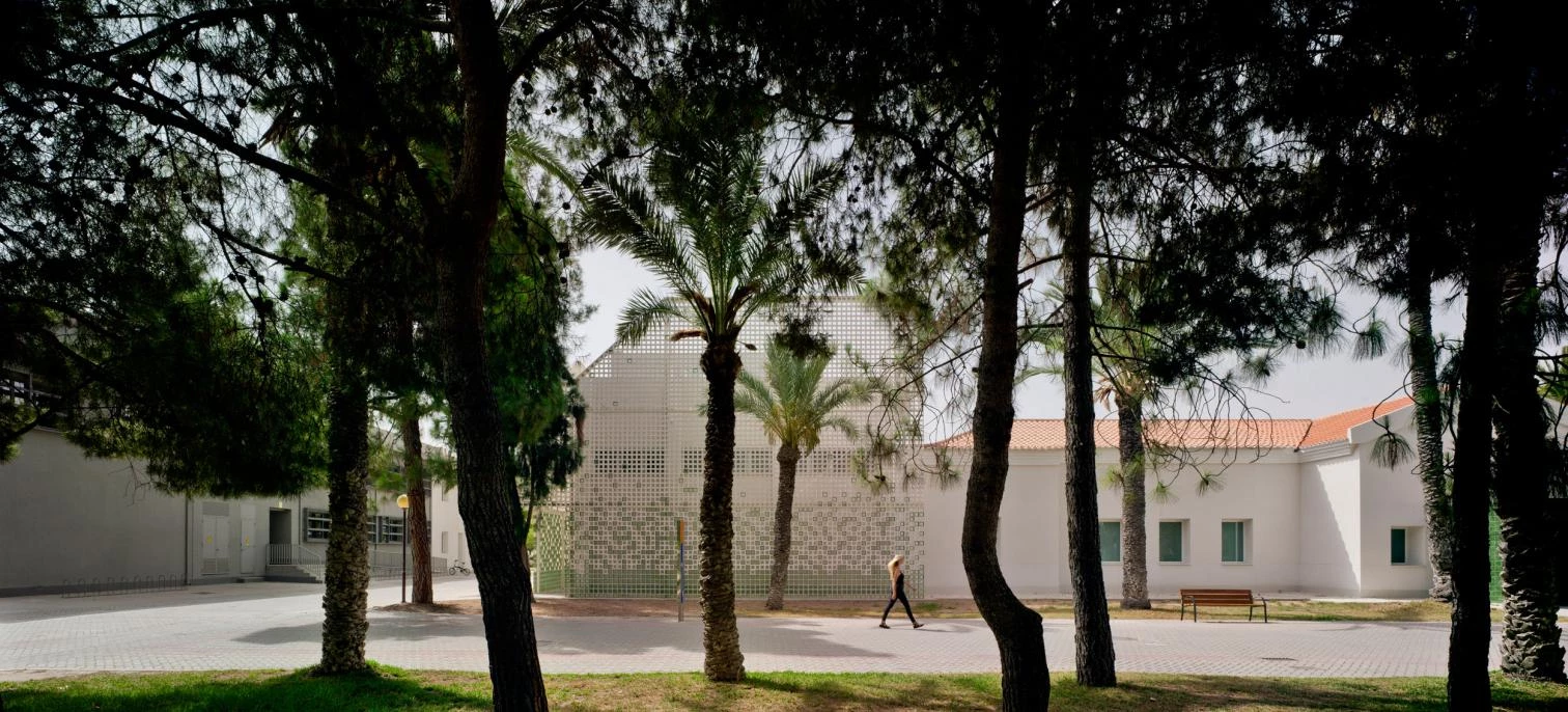 The complex consists of a pavilion built in the 1940s whose exterior is renovated, and a rationalist building, attached in the 1980s, covered with a latticework to establish a dialogue with the old warehouse.