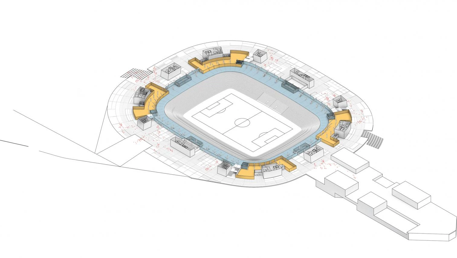 Seating 63,000 spectators, the new stadium of the football club Feyenoord Rotterdam will be the largest in the Netherlands. The project led by David Gianotten – with Kees van Casteren and Shinji Takagi – of the Dutch firm OMA draws inspiration from the team’s current home, known as De Kuip (the bathtub), formed by several continuous curved levels close to the pitch. The complex is to be multifunctional, conceived to accommodate a variety of other large-scale events, such as concerts and congresses. LOLA Landscape Architects will fit out the concourse around the stadium, with public spaces along the banks of the Maas River. After getting this schematic design officially approved by Feyenoord, OMA will proceed to develop it in detail, and the stadium is programmed to open in 2023.