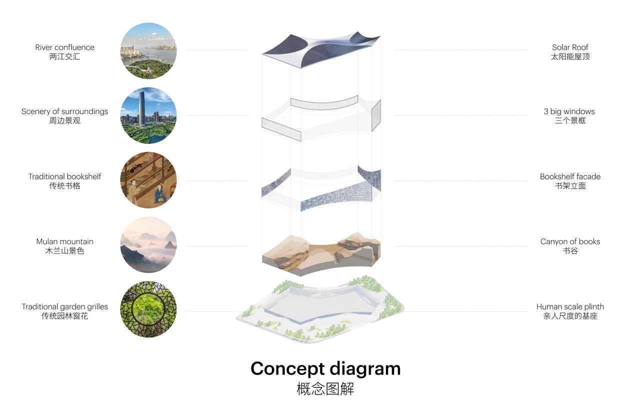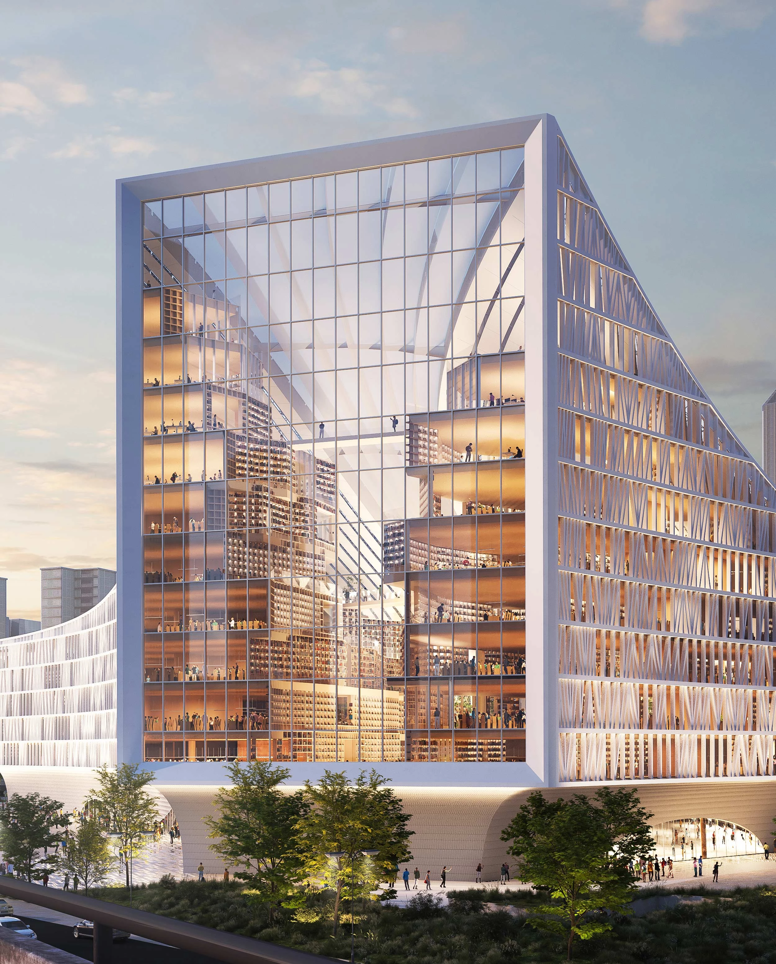 The Rotterdam firm MVRDV has won the competition to build the new central library of Wuhan. With its 140,000 square meters, it seeks to be one of China’s largest libraries. The building opens to reveal activities going on between stepped tiers of books inside, luring passers-by to enter.