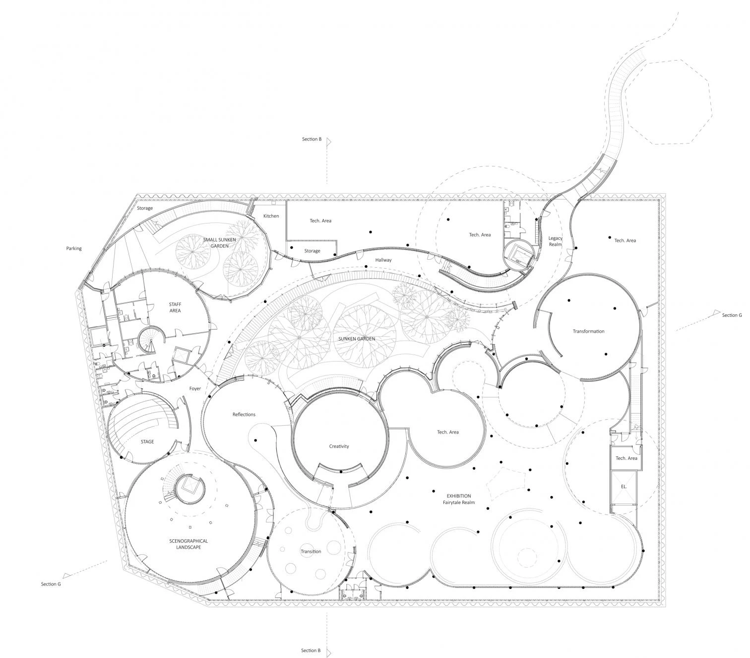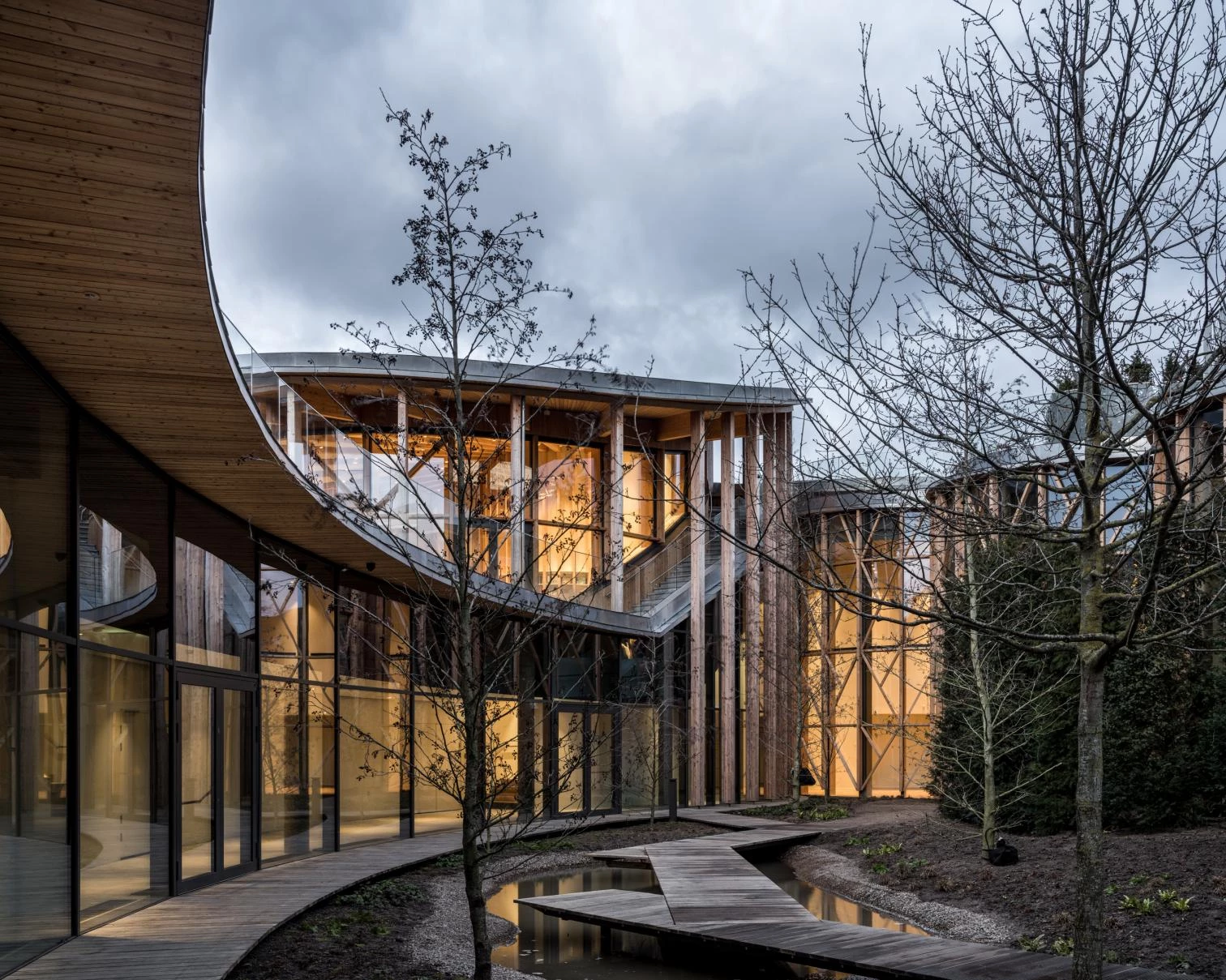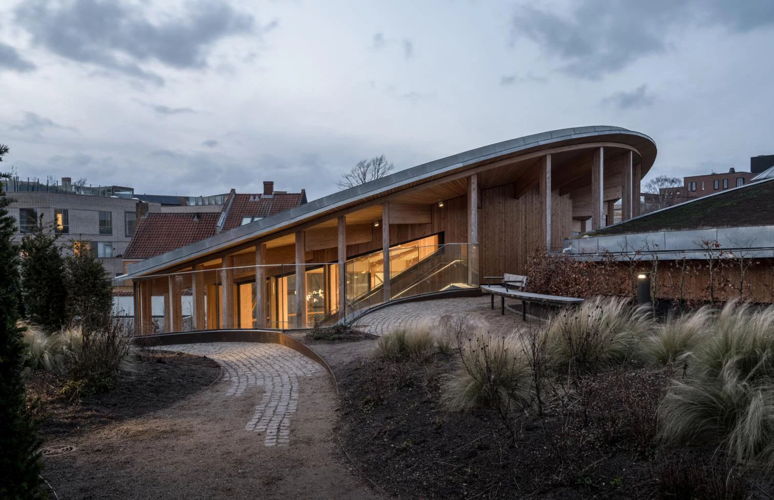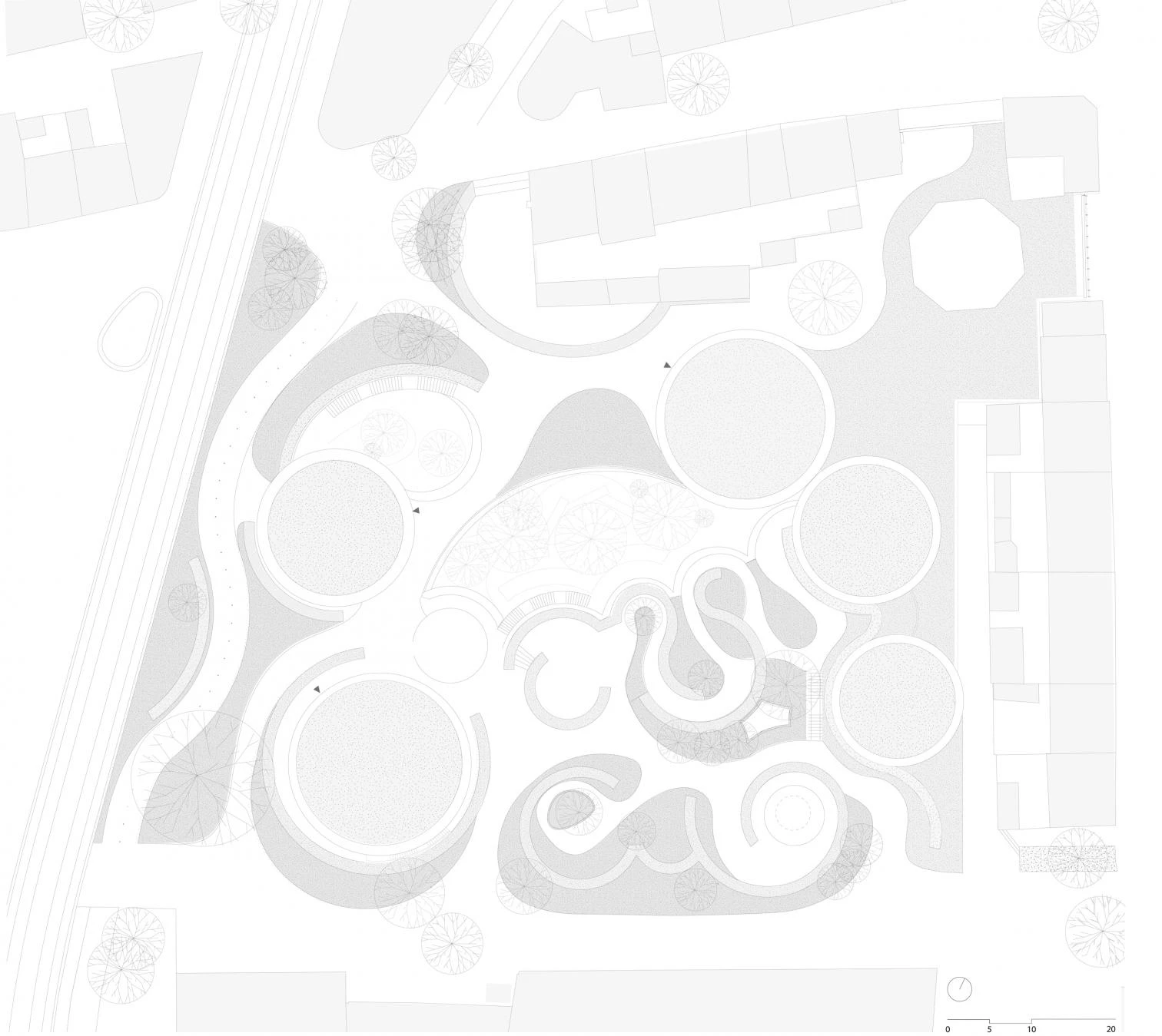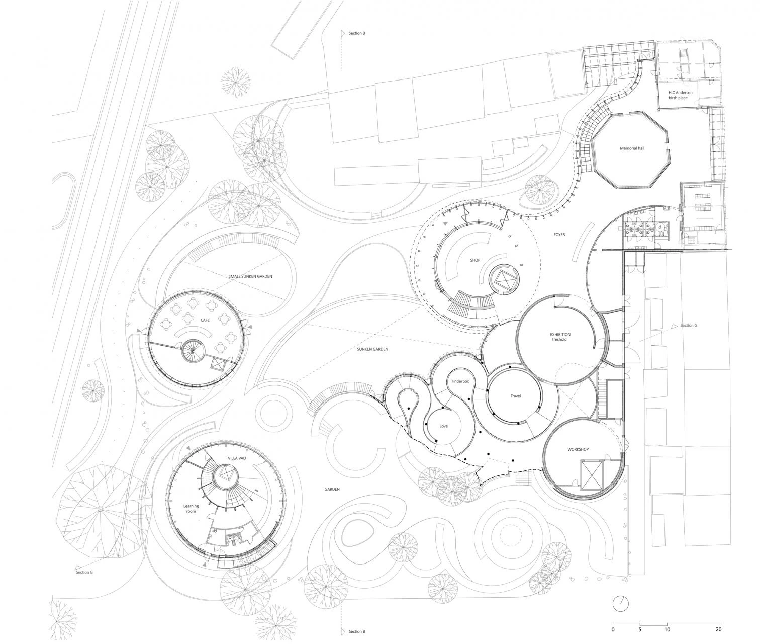 As the architect Yuki Ikeguchi, who served as project leader, explains, the scheme drawn up by the firm Kengo Kuma & Associates – winner of the competition held for the purpose in 2016 – sought to reflect the duality of opposites that surrounds us, as in Andersen’s literature. Cylindrical volumes interconnect tangentially, forming a continuous meandering route from the gardens to the museum, where the exhibition spaces are placed below grade. The project seeks to give visitors an experience that immerses them in worlds imagined by the writer, through a narrative sequence of scenographic places like labyrinths, forests, underground spaces, and more.
