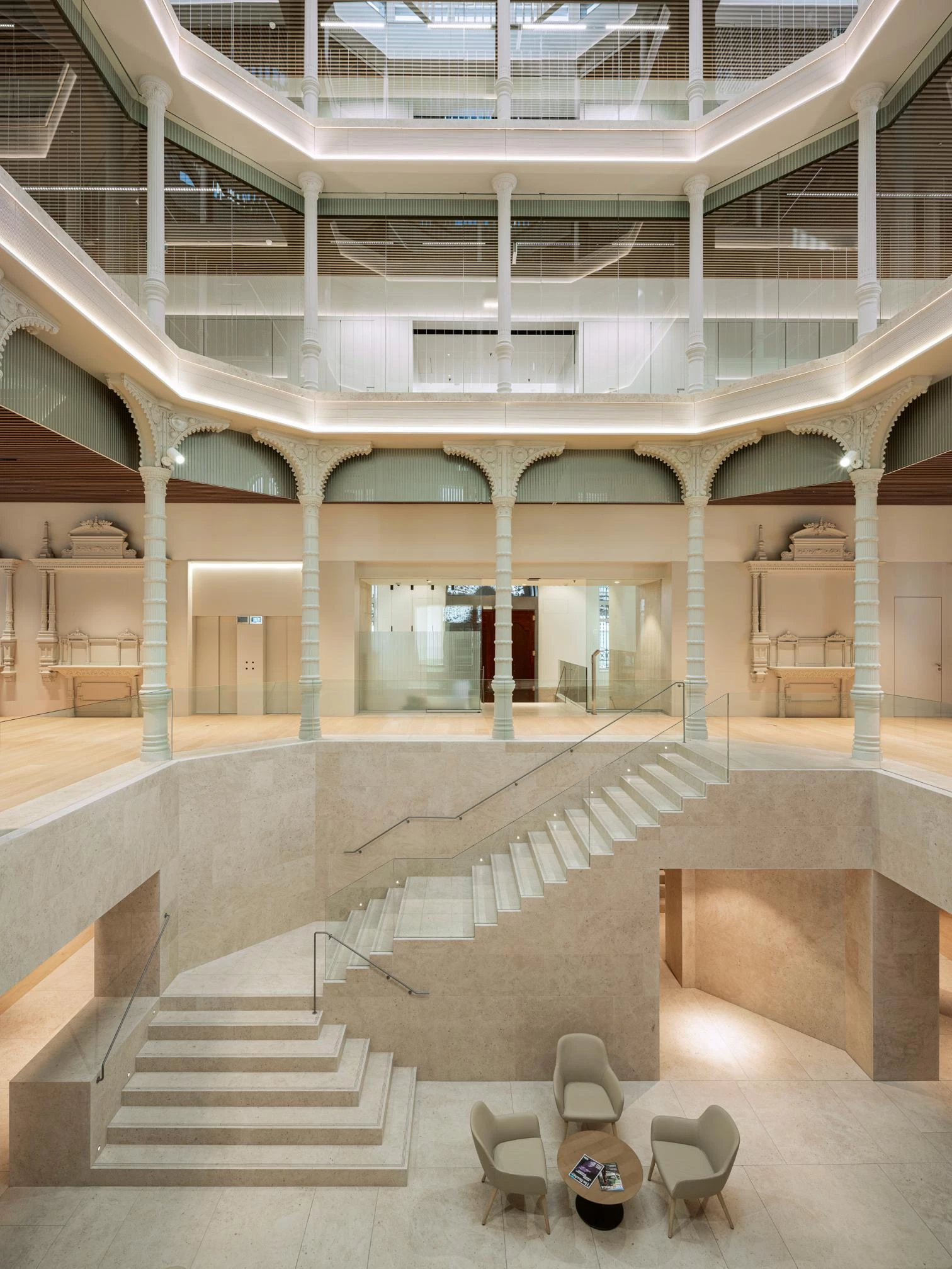 The project intends to provide the building with a new, more unitary destination. This has led to changing the previous horizontal division and to reinforcing the verticality allowed by the courtyard and the clear structure of cast iron columns around it. The building is connected vertically by an atrium that extends from the basement floor, through the rest of the floors, to a multifunctional space on deck. Maximum transparency will allow the understanding of the whole building at once through the vertical patio.