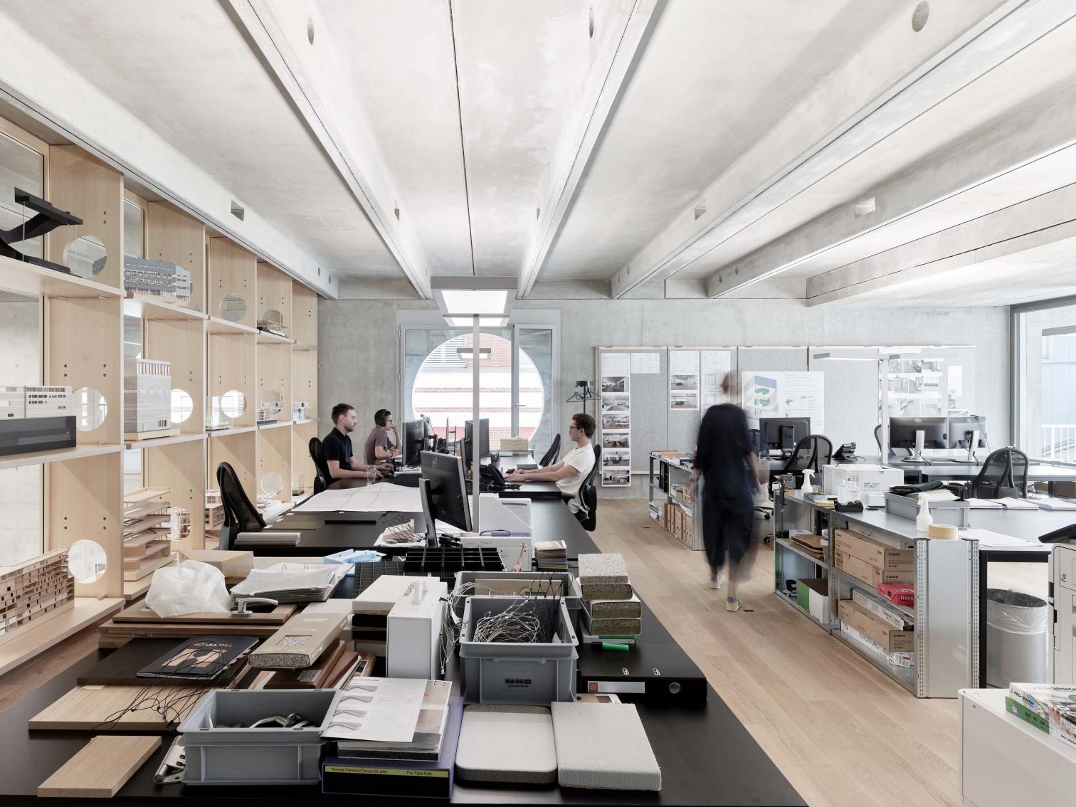 How do we want to work tomorrow? That is the question that EM2N set out to answer in designing the building located at Binzstrasse in Zurich. From the start of the project it was clear that the Swiss practice would itself take part of the rental space for its offices.