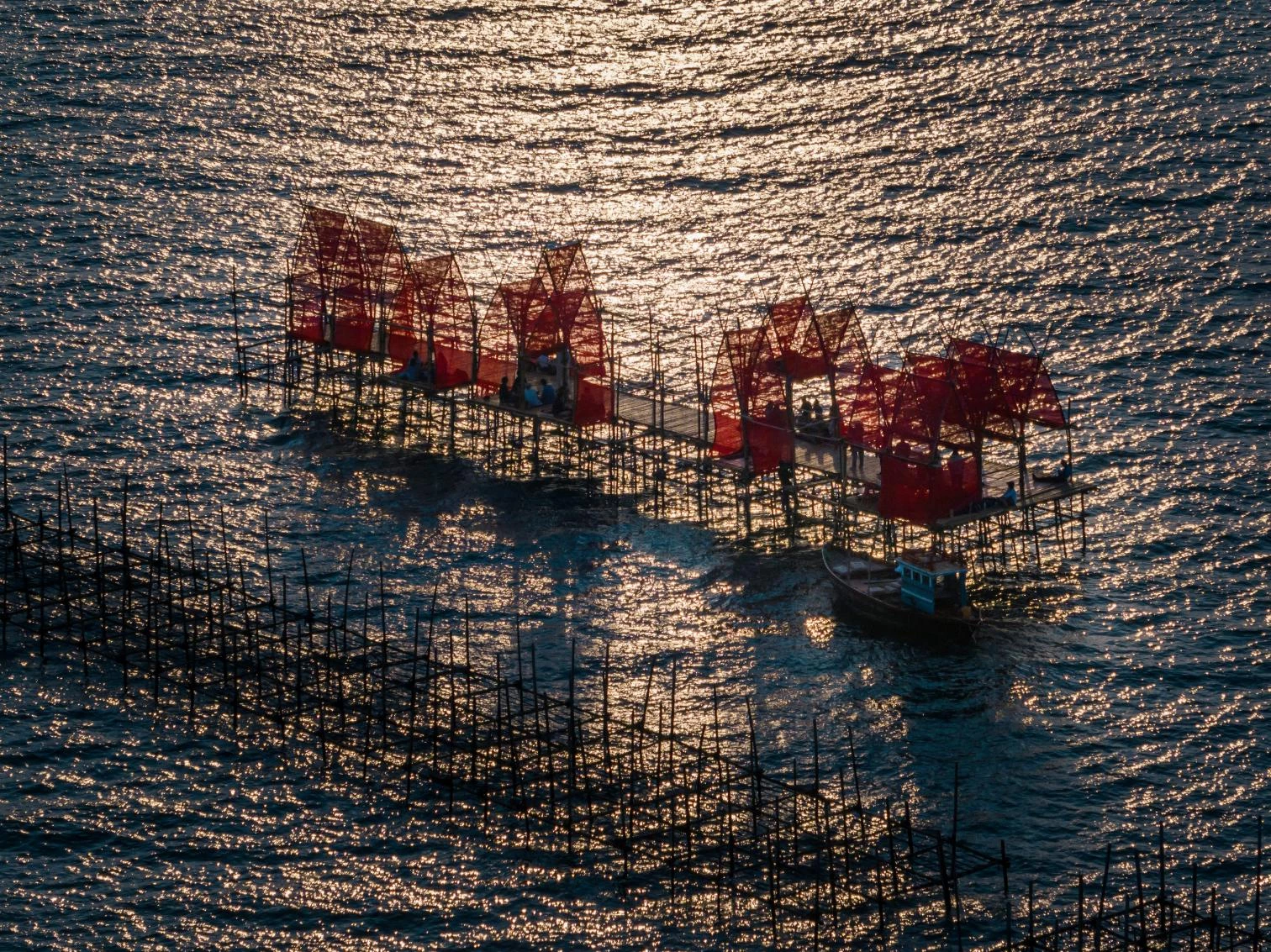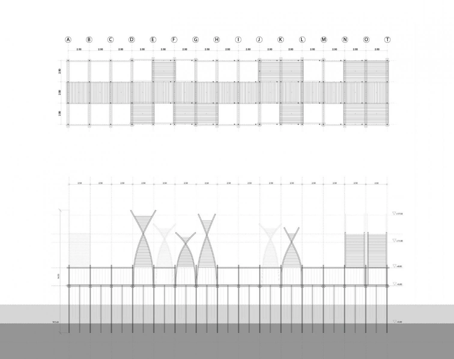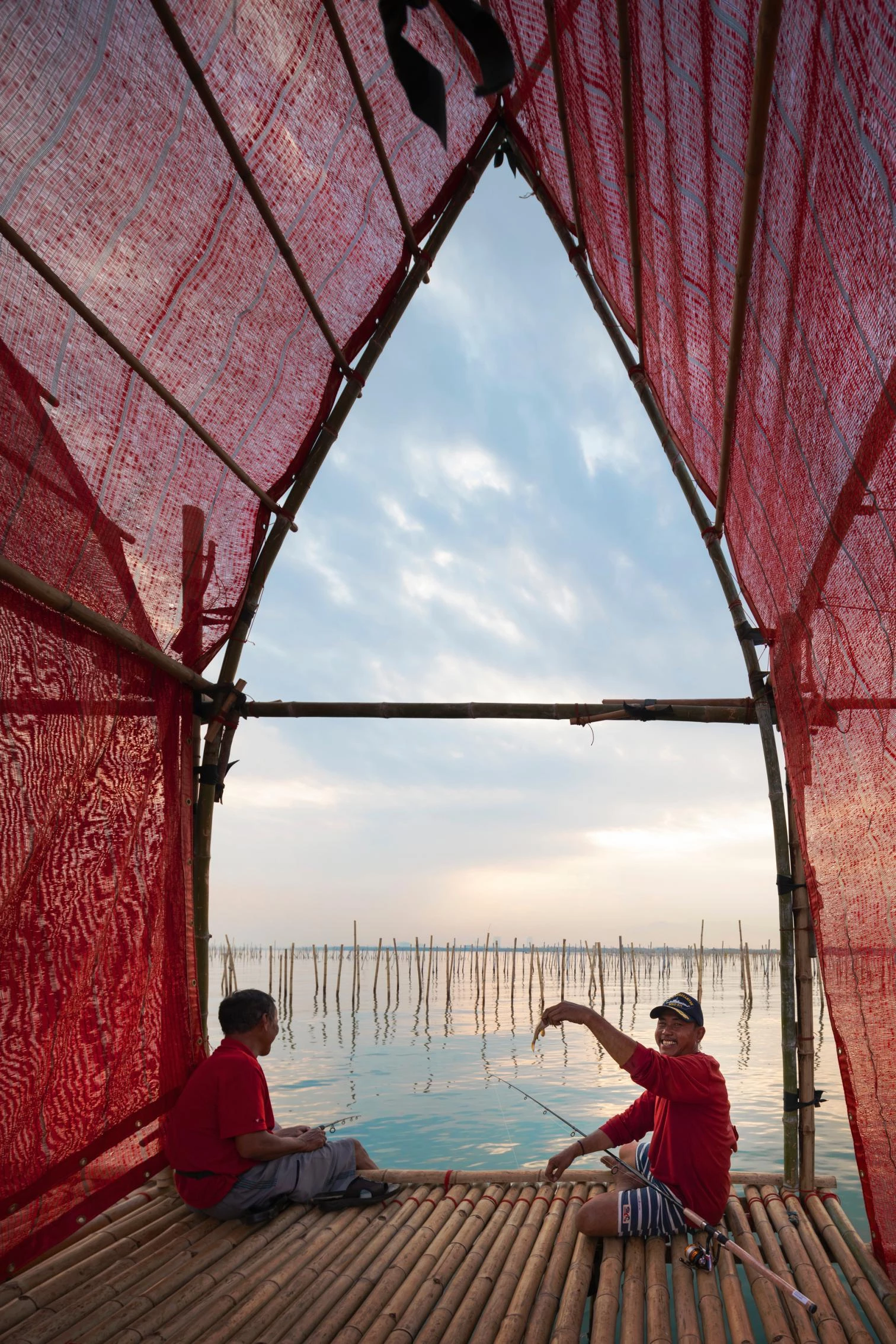 Located off the coast of the Angsila fishing village, in Chonburi Province, Thailand, this prototype designed to boost ecotourism draws on the bamboo scaffolding traditionally used for oyster cultivation. The local fishermen bring people visiting Angsila to this pavilion for the experience of tasting truly fresh oysters, a sea-to-table gastronomic adventure in a remarkable setting. The structure was built by Angsila fishermen themselves through vernacular techniques of building with bamboo in shallow water, driving each bamboo column into the ocean floor.