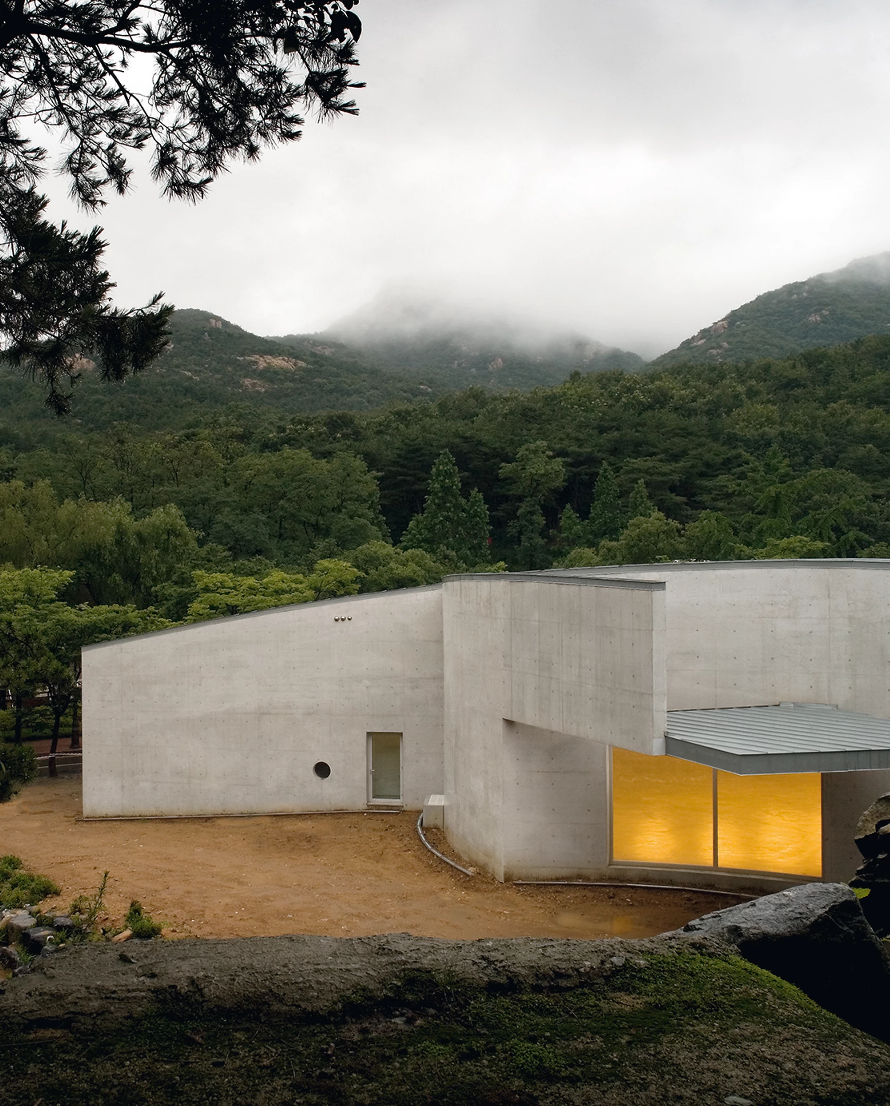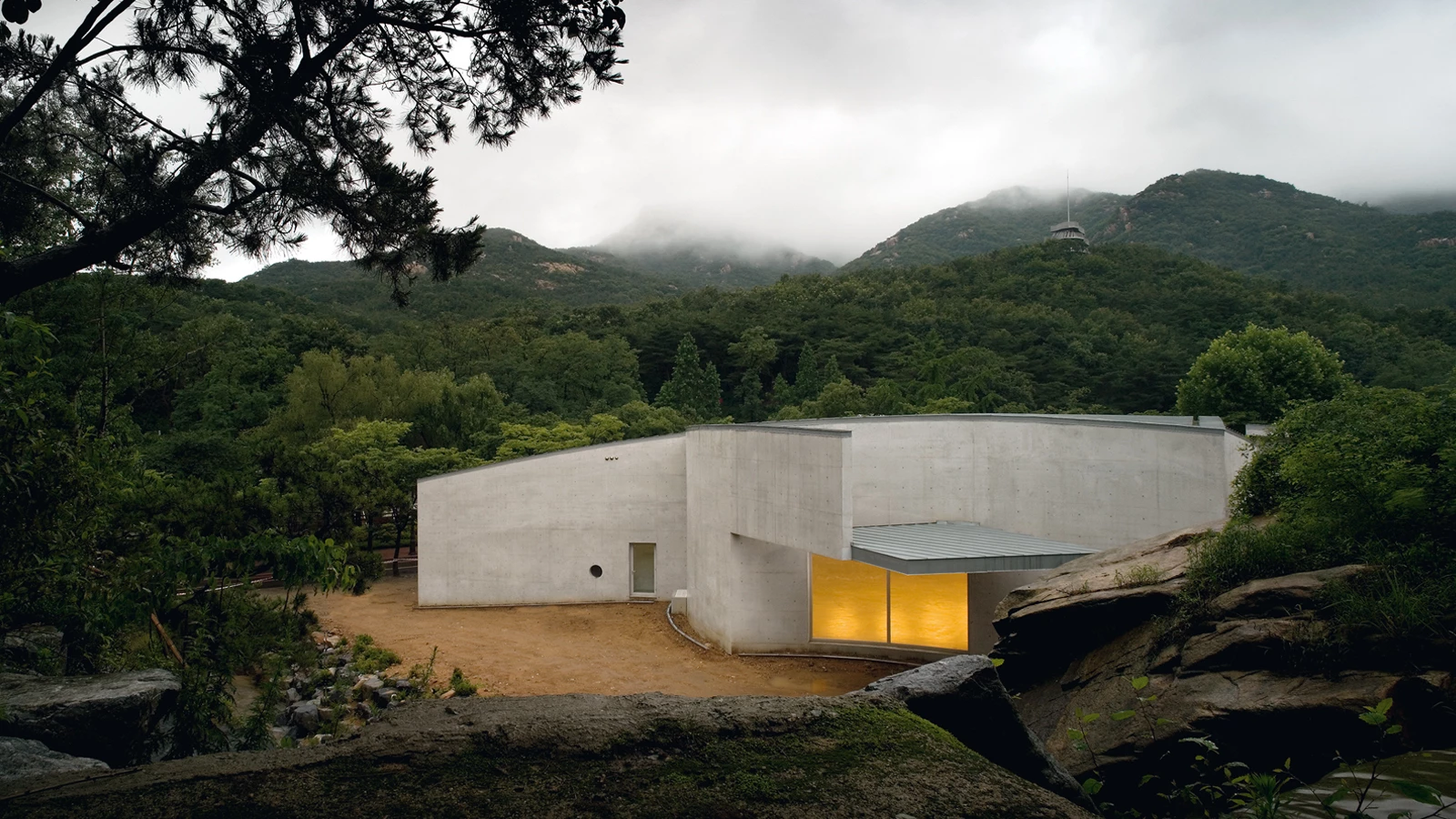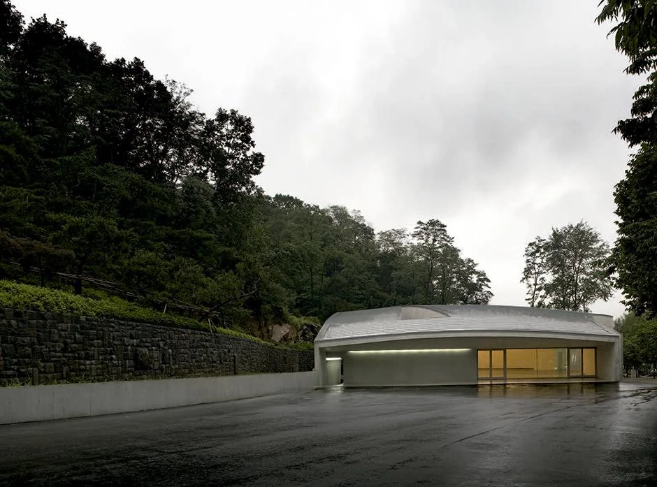 Located in a dramatic landscape, even more impressive during the Monsoon, the pavilion is part of a project to bring art closer to citizens through interventions in the natural environment in the South Korean city of Anyang, thirty kilometers from Seoul.