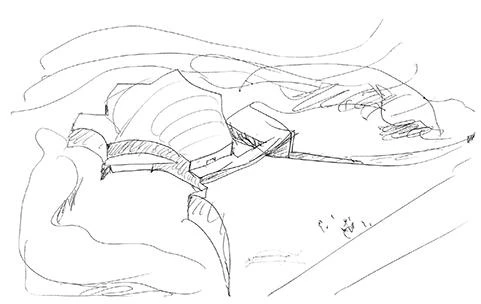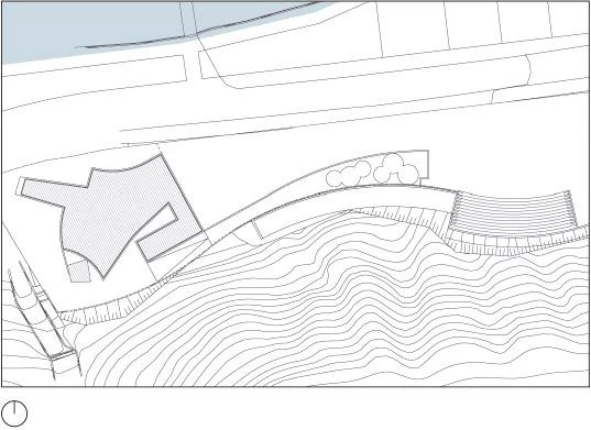 A series of curved walls intersect the also curved roof, closing a dynamic space that combines concave and convex surfaces. The program is simple: a large multipurpose space, a small office for the police and a series of restrooms for park visitors. As much the restrooms as the office take up annex positions and both have independent entrances from the exterior. The central space is unencumbered and perceived as a continuous space, characterized by the nuances generated by the light cascading down the curved surfaces. A staircase tucked in the protruding volume gives access to a meeting room located in the upper mezzanine that looks out, through a rectangular opening, to the main space. With the exception of the glazed walls and two small windows, the walls practically have no openings, isolating the building from its context and focussing on the pavilion’s interior spaces.