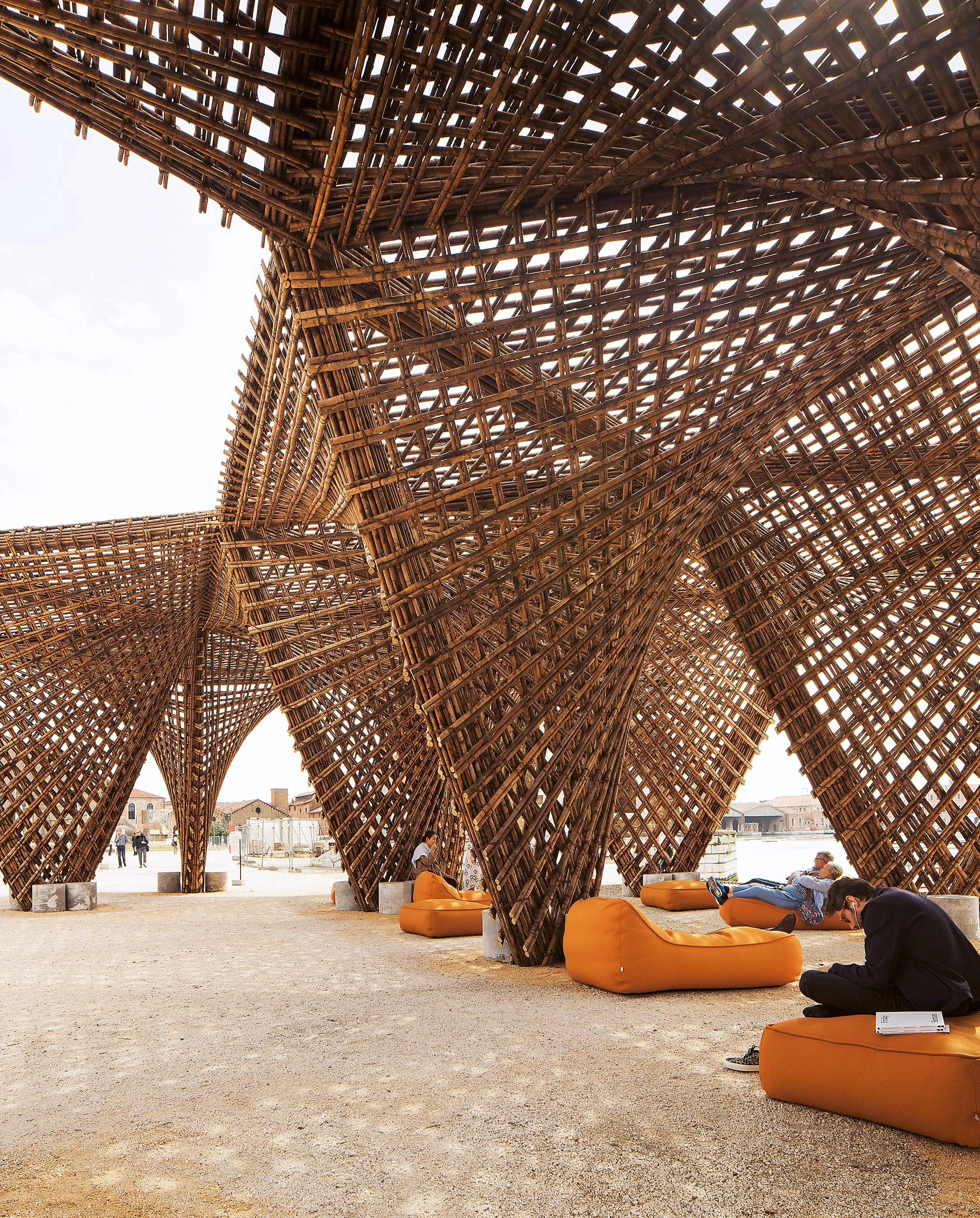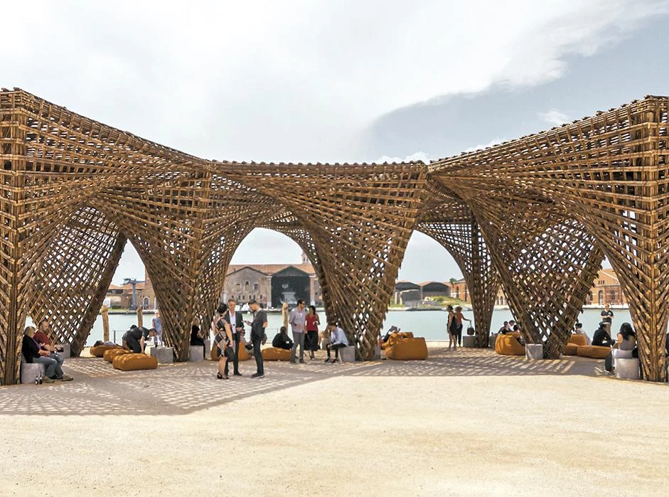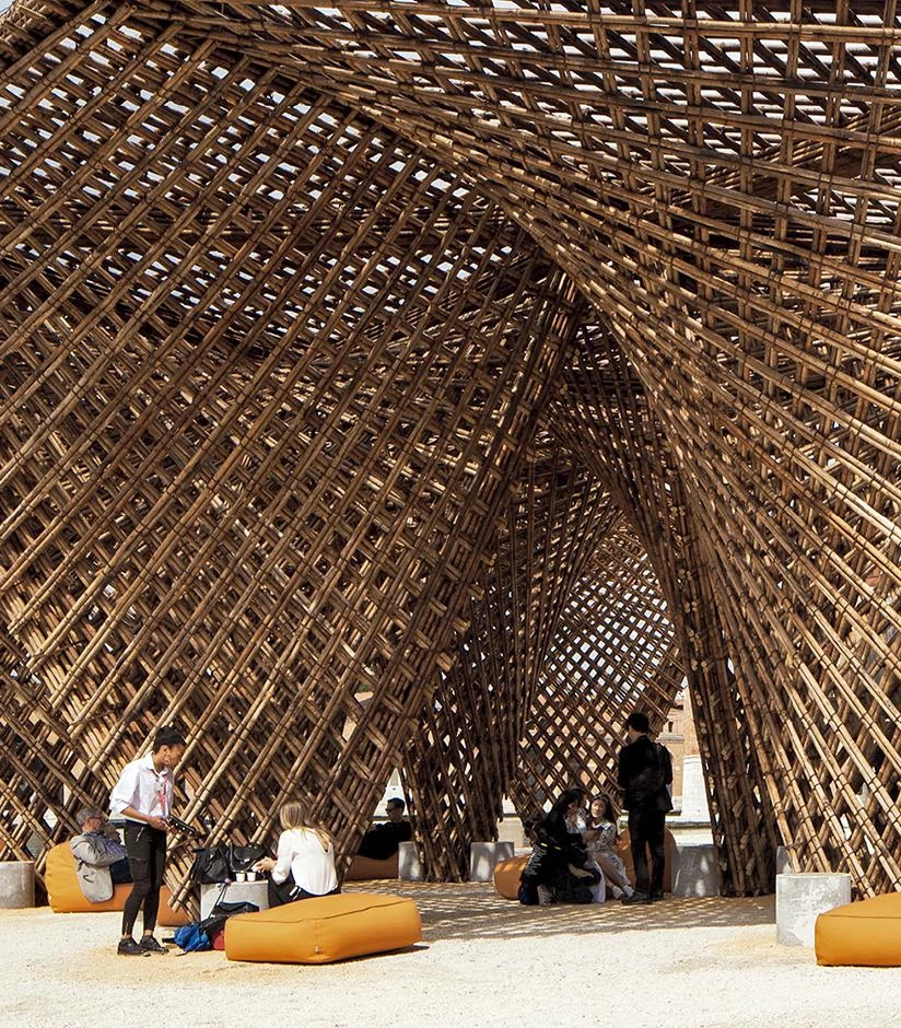 Freespace, the optimistic motto chosen for the 16th edition of the Venice Architecture Biennale, curated by Yvonne Farrell and Shelley McNamara – Grafton Architects –, defends that architecture can be generous and functional at the same time. In line with the theme of the exhibition, a large bamboo pergola was built on one of the docks of the Arsenale. Designed as an open and shared space, the structure is a prototype that can be duplicated in Venice but also in other urban or rural areas, and which can hold activities of different kinds like exhibitions, workshops, or meetings of the local communities. It can be transported easily and can therefore be a space in a museum, a pavilion for a school or just a gathering area.