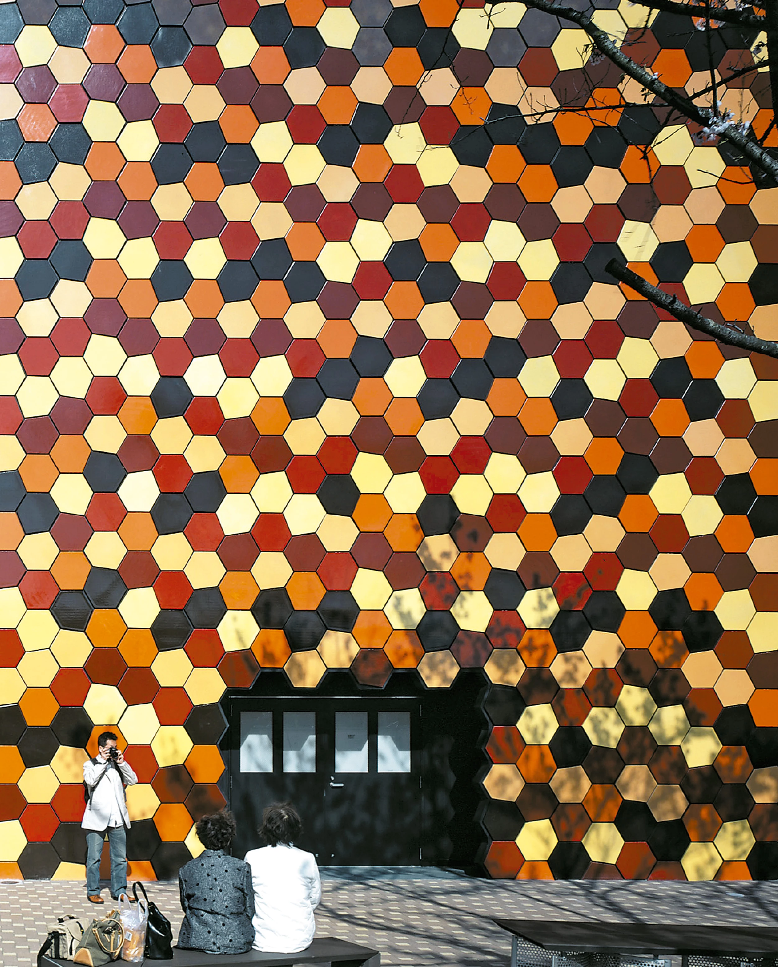 The universal Expo Aichi 2005, which was celebrated during the summer months in the Japanese city of the same name (in Nagoya, between Tokyo and Osaka), gave each one of the countries participating in the exhibition a container, which they could use freely, within the exhibition grounds. Spain decided to wrap its own – a prism of 18x18x9 meters – with a skin of interwoven glazed ceramic pieces of different colors, symbolizing the encounter between cultures, the Spanish and the Japanese, that the Expo stimulates.