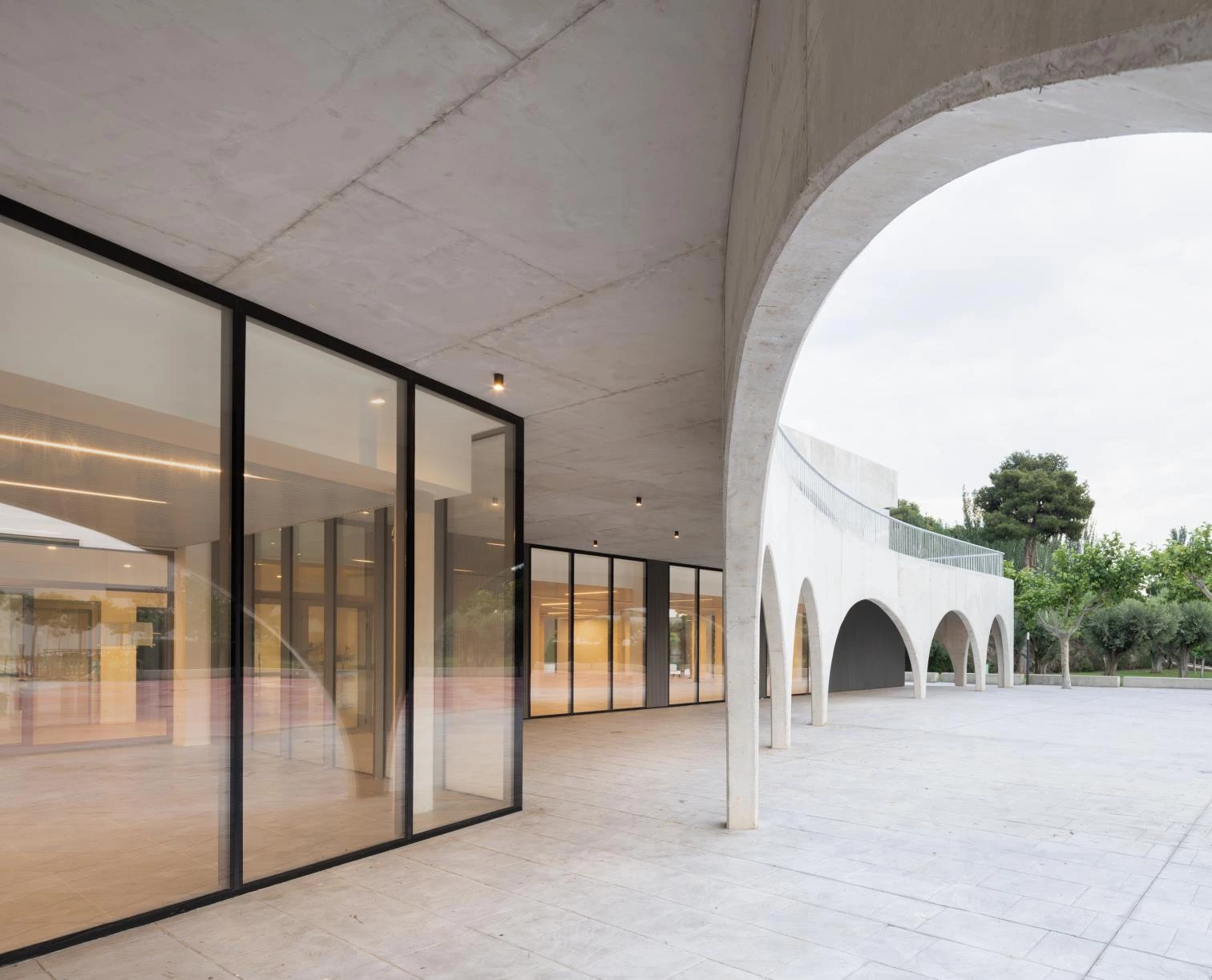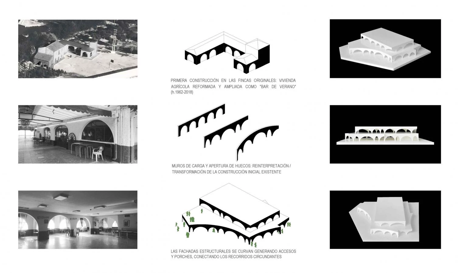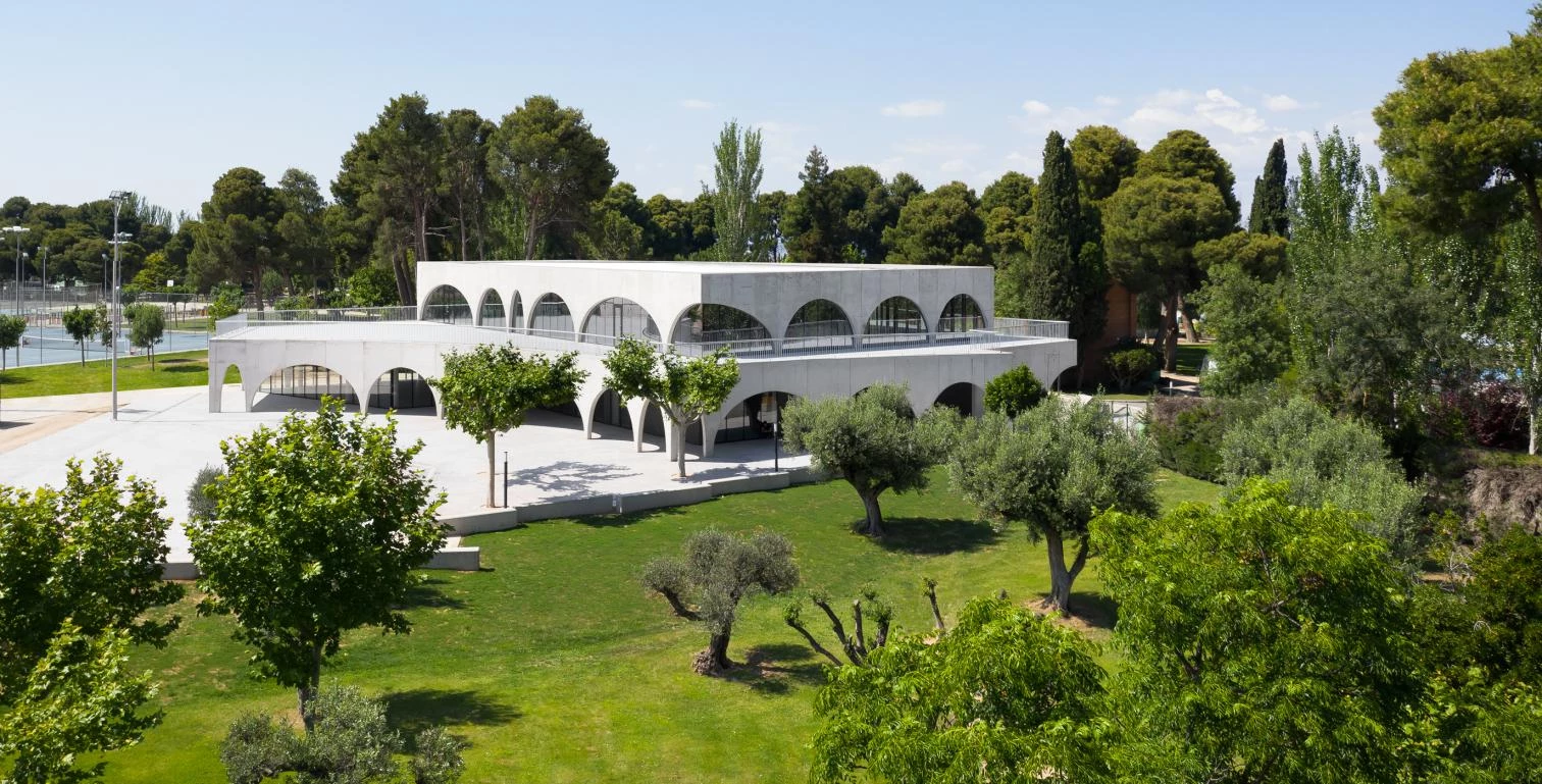 The Miralbueno-El Olivar sports complex has its origin in the purchase of two estates, in the 1960s, and the project to build two swimming pools and a park, commissioned to the architect from Zaragoza José Romero. Later on, the farmhouse was enlarged and turned into a summer bar. In 2007, with the extension of the facilities to the south, this building came to occupy the center of the new lot, at the crossroads of several internal paths, surrounded by green areas. The initial plan considered its refurbishment and extension, but the poor state it was in, and the growing program requirements, made renovation inadvisable and encouraged to raise a new building.