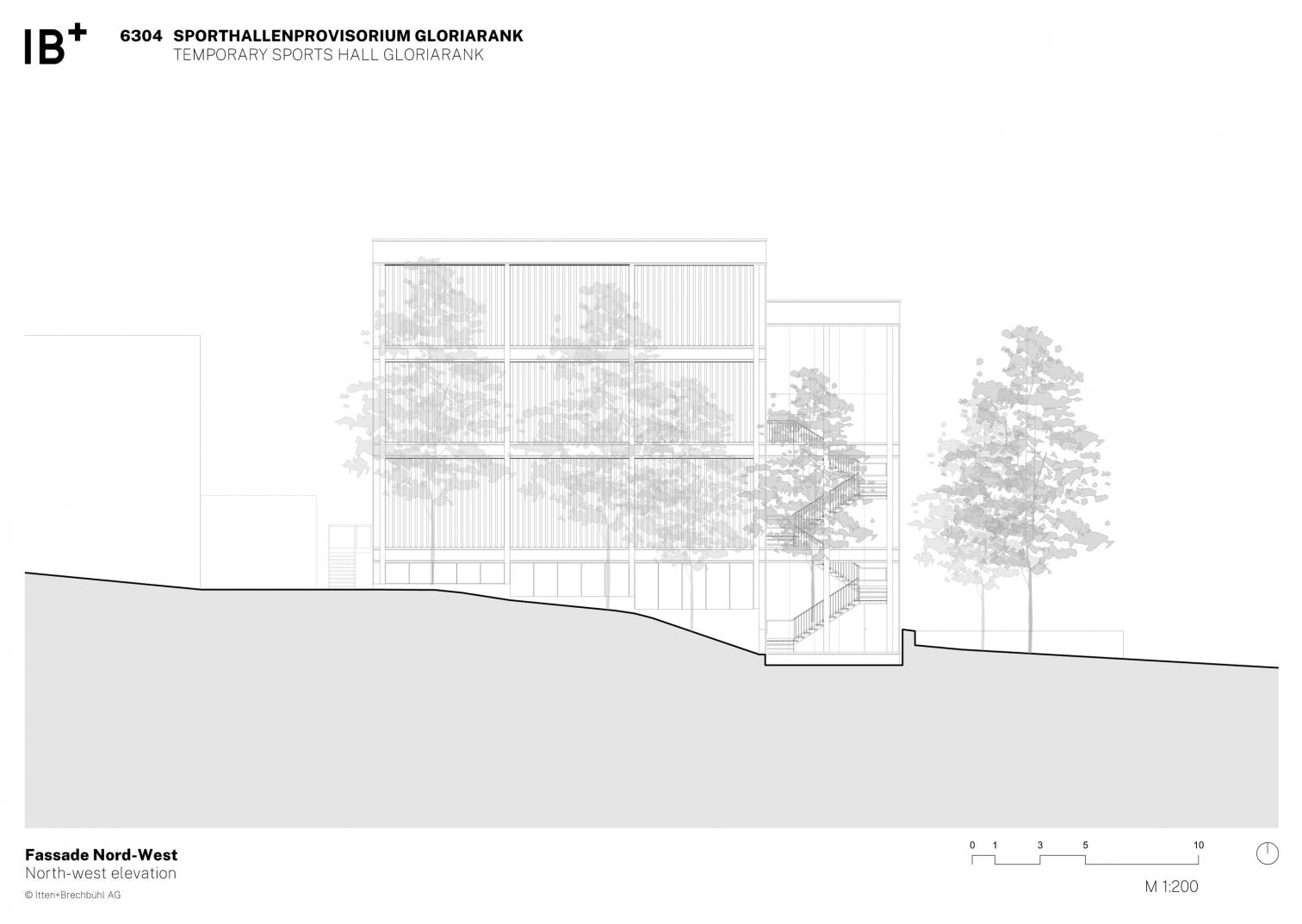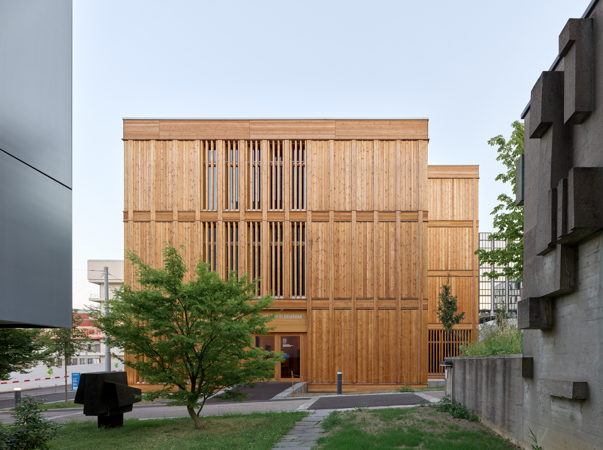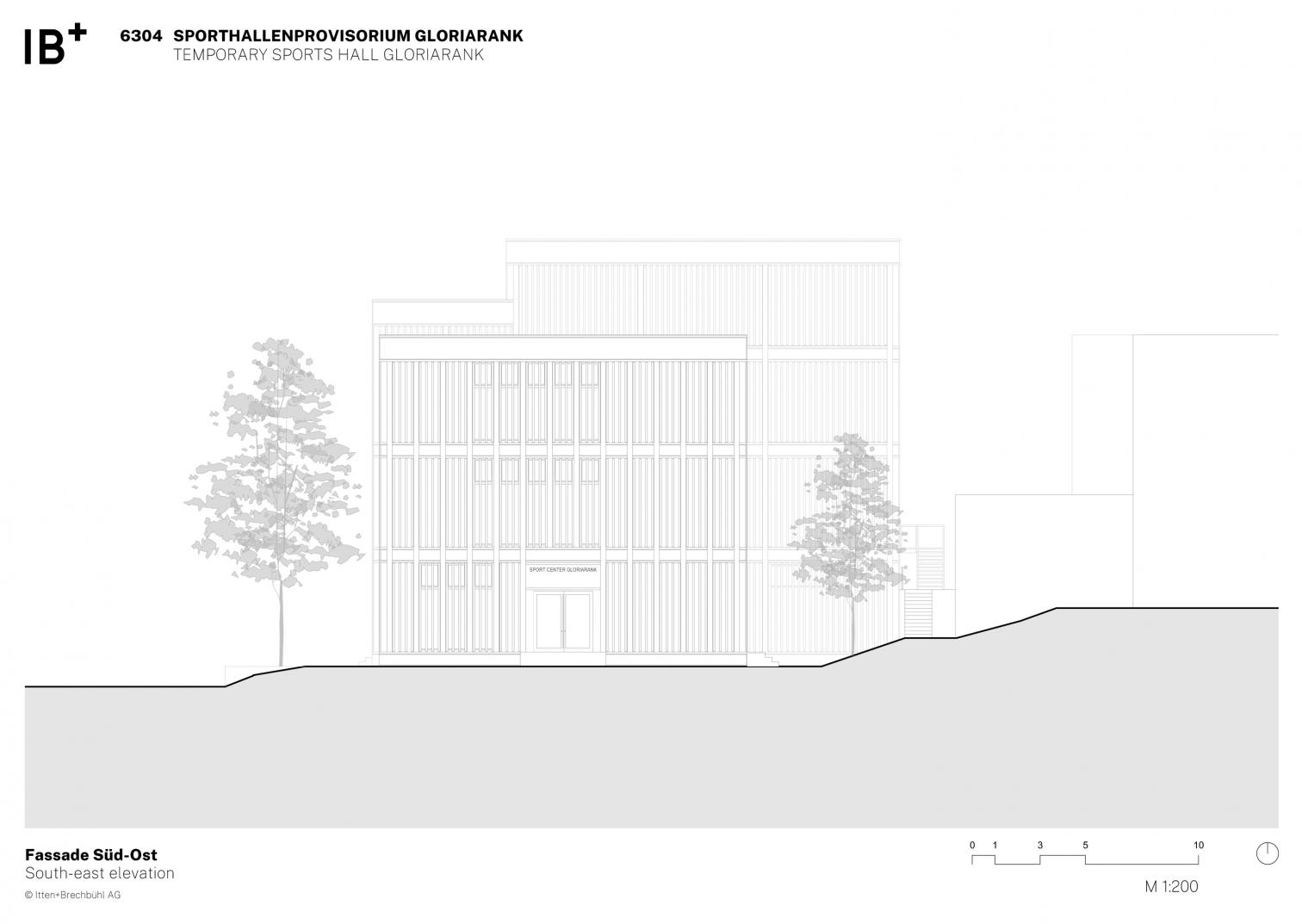 With sustainability in mind, this timber building rose to be easily dismantled after ten years of use. The construction of Forum UZH, a Zurich training and research center designed by Herzog & de Meuron, required taking down four existing sports halls. The provisional Gloriarank replaces them until the completion of the Forum, which will include sporting facilities.