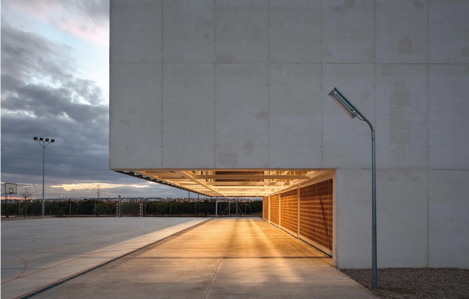 The project adds a new multipurpose space to Escola Gavina, in the Valencian municipality of Picanya. The main building of this learning institution was designed in 1980 by the architect Manuel Portaceli – author also of the extension undertaken some years later, in 1995 –, and which is still in use today practically the same as when it was first built. The new extension of the facilities consists basically in the construction of a pavilion that, aside from its general use as a sports court, is also suitable for the celebration of all sorts of large public events (assemblies, parties, plays, and concerts) rounding off the program with a music hall and a psychomotor therapy room. The original building is a quadrangular prism with a porticoed structure that marks the composition, and the volume of which is partially emptied preserving the structure, a solution that evokes that of Giuseppe Terragni’s mythical building in Como. In this way, the design of the new pavilion reinterprets the keys of the original one but with different constructive solutions.