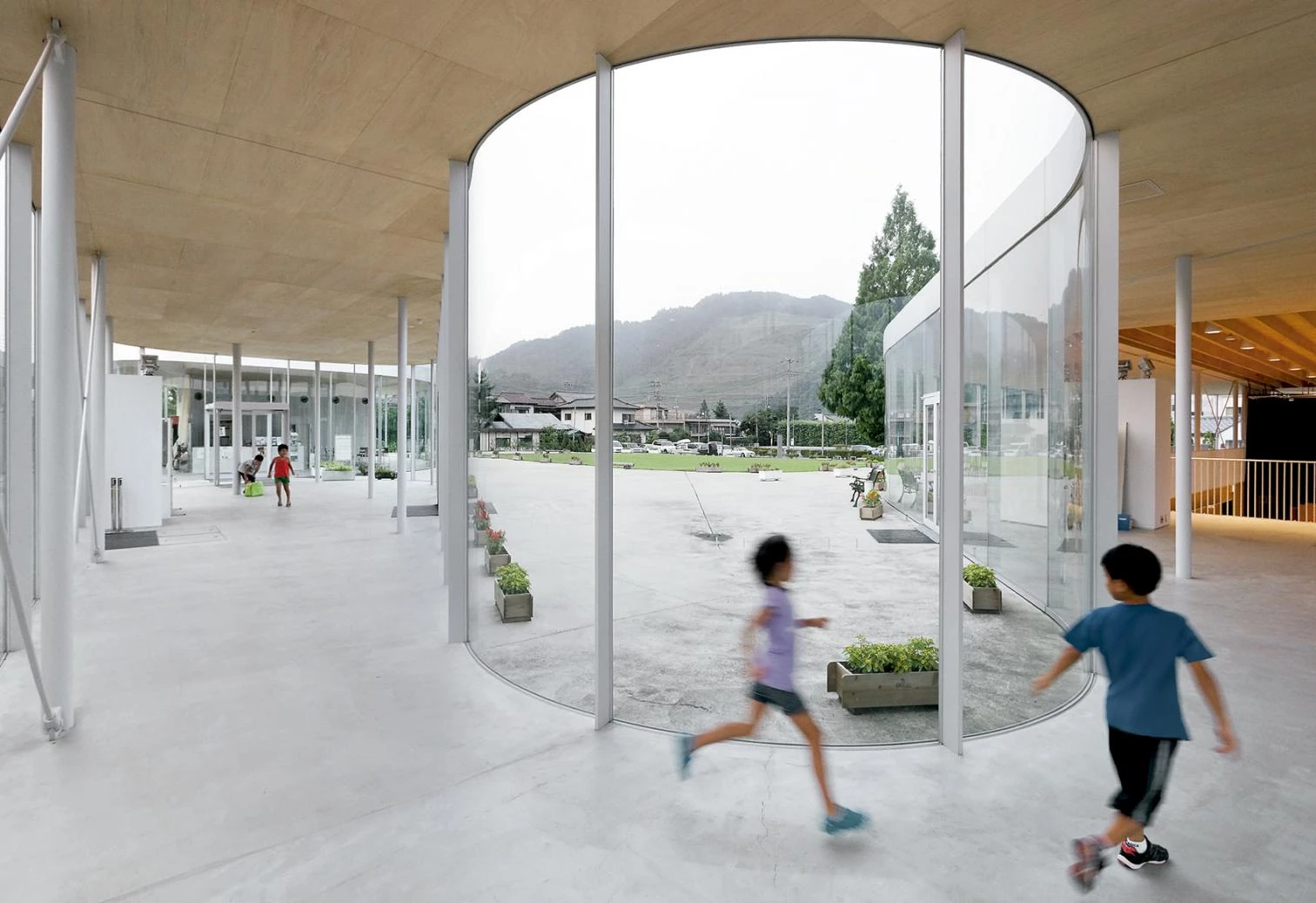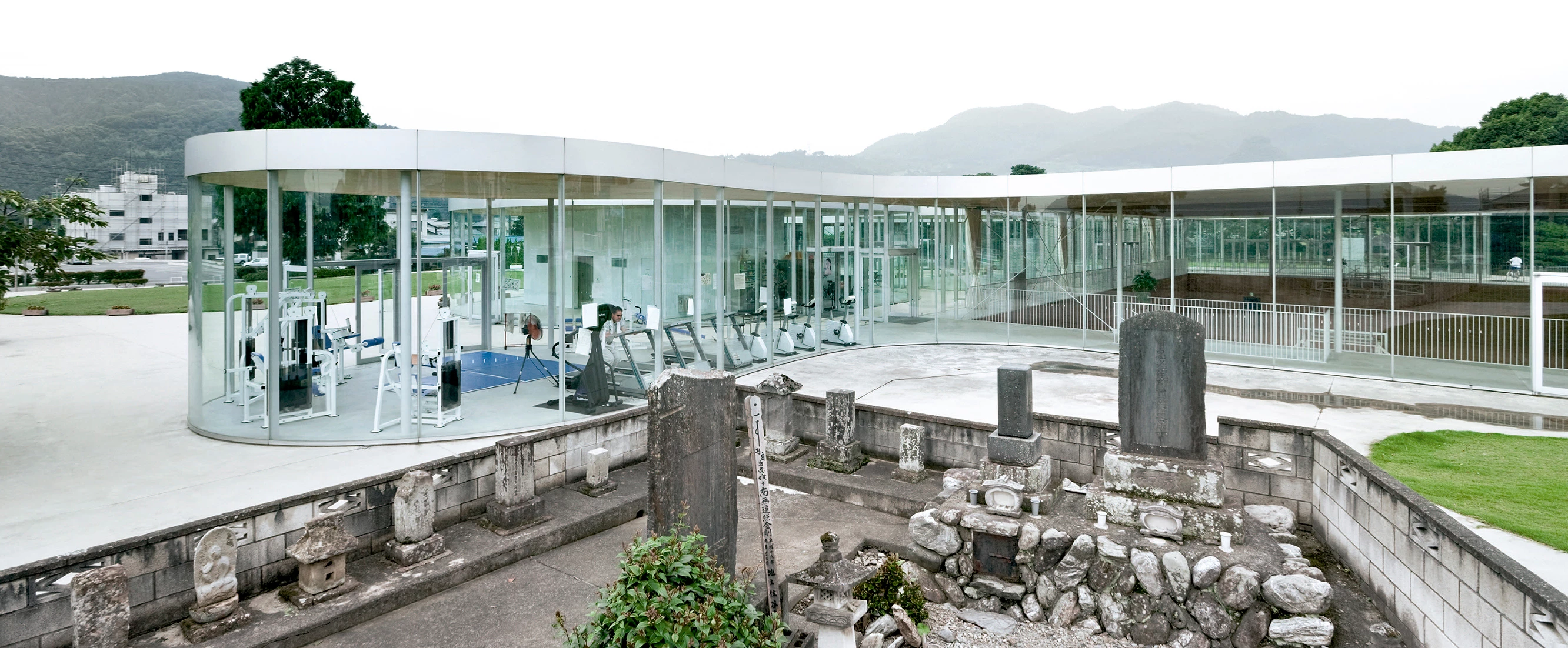 In Gunma prefecture, in the interior of Japan, this public facility is spread out on a park to create a civic epicenter for the one thousand inhabitants in the small municipality where it is located. The building, including an administration center, a sports hall and an auditorium, divides its program into three delicate single-story amoeba-shaped pavilions, which take up the plot forming an archipelago of transparent pieces. The paths of the urban fabric where it is inserted extend between the interstitial spaces of the pavilions, creating continuous visual links. The contraction and expansion of its boundaries creates ambiguous situations between the interior and exterior character of the spaces; on the other hand, the transparency of the enclosures show what is going on inside the building and helps to create a civic center that is seen as part of the town’s fabric, where users and their actions are the most important elements of the architecture. Per request of the client, the pavilions are built with a mixed structure of local wood, Onishi Sugi, and reinforcement steel sheets to span the 19 meters of the gymnasium, which is partially buried to maintain the single height and the visual continuity of the complex.