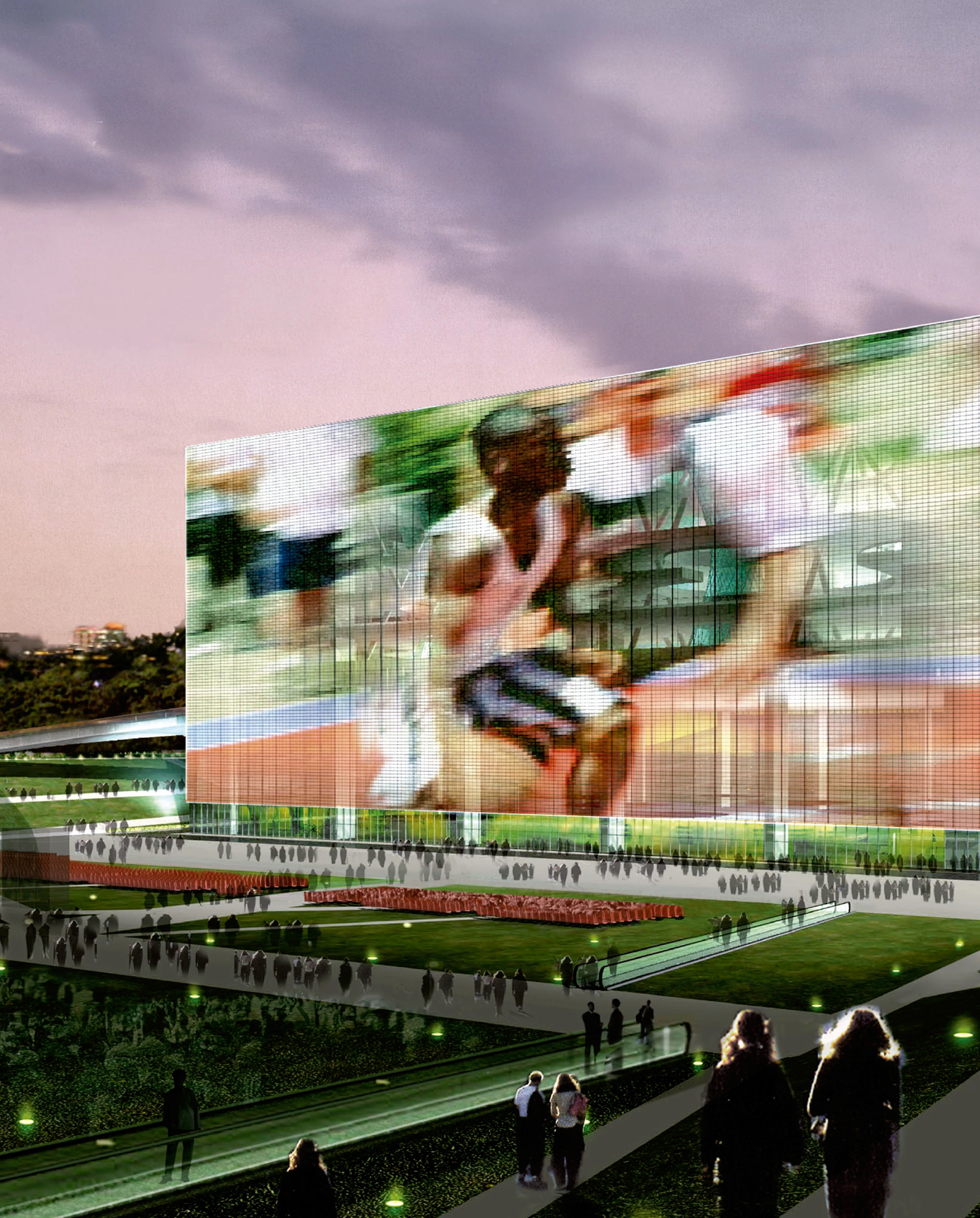 Designed to maintain an open and horizontal perception of the new olympic park of Wukesong, an artificial topography of craters of different sizes shall serve as the formal structure from which to develop the new cultural and sports center. Over the years, and depending on the needs, these craters shall be assigned with ephemeral or permanent installations always below the normal circulation level, so avoiding the proliferation of volumes. The new multipurpose sports hall of Wukesong, which shall be the venue for the olympic basketball competitions, is located precisely in one of those craters with an amphitheater section, performing as anteroom to the sports premises.