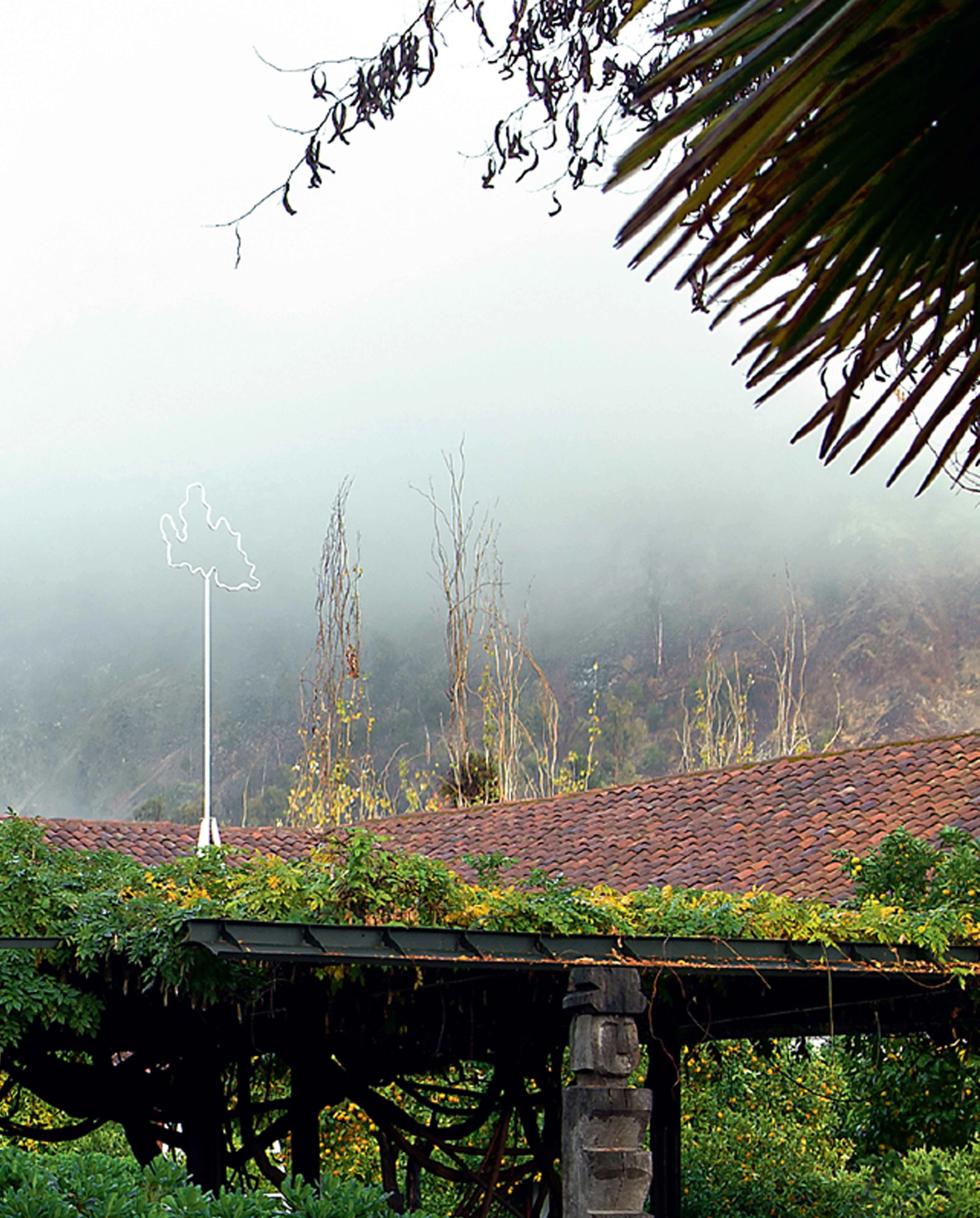 Out of all the possible landscapes, the one we see daily is the one that disappears the most. Not so long ago, we traced the silhouette of a cloud on a window. The glass extended its functions with this drawing: besides unsuccessfully trying to be invisible to allow us to see beyond and of prodigiously trying to be a mirror, that continuous line was enough to turn the crystal into a canvas. With the figure of the cloud barely finished, its form and position had changed and, in a moment, it had evaporated against the horizon. The second cloud, the drawn one, vaguely reminded of the first one. With rather weak steel bars, elevated on top of a ladder, we built a third cloud that, in its modesty, exceeds the previous two. Between innocence and destiny, now the figure is filled in with a rare sky, rotating over itself, left to the fate of the wind.