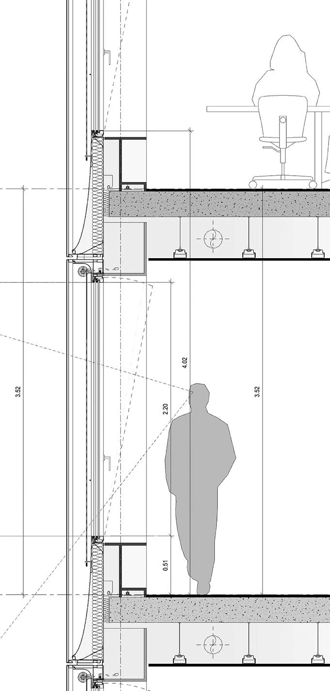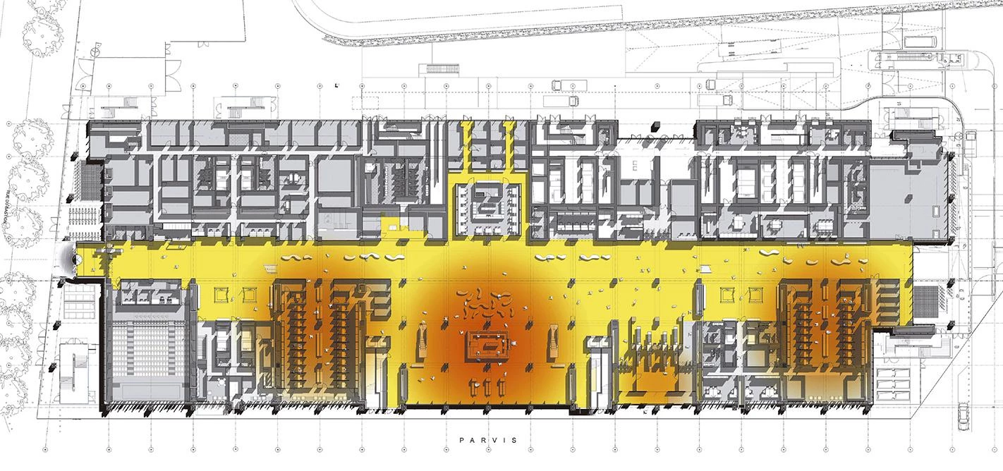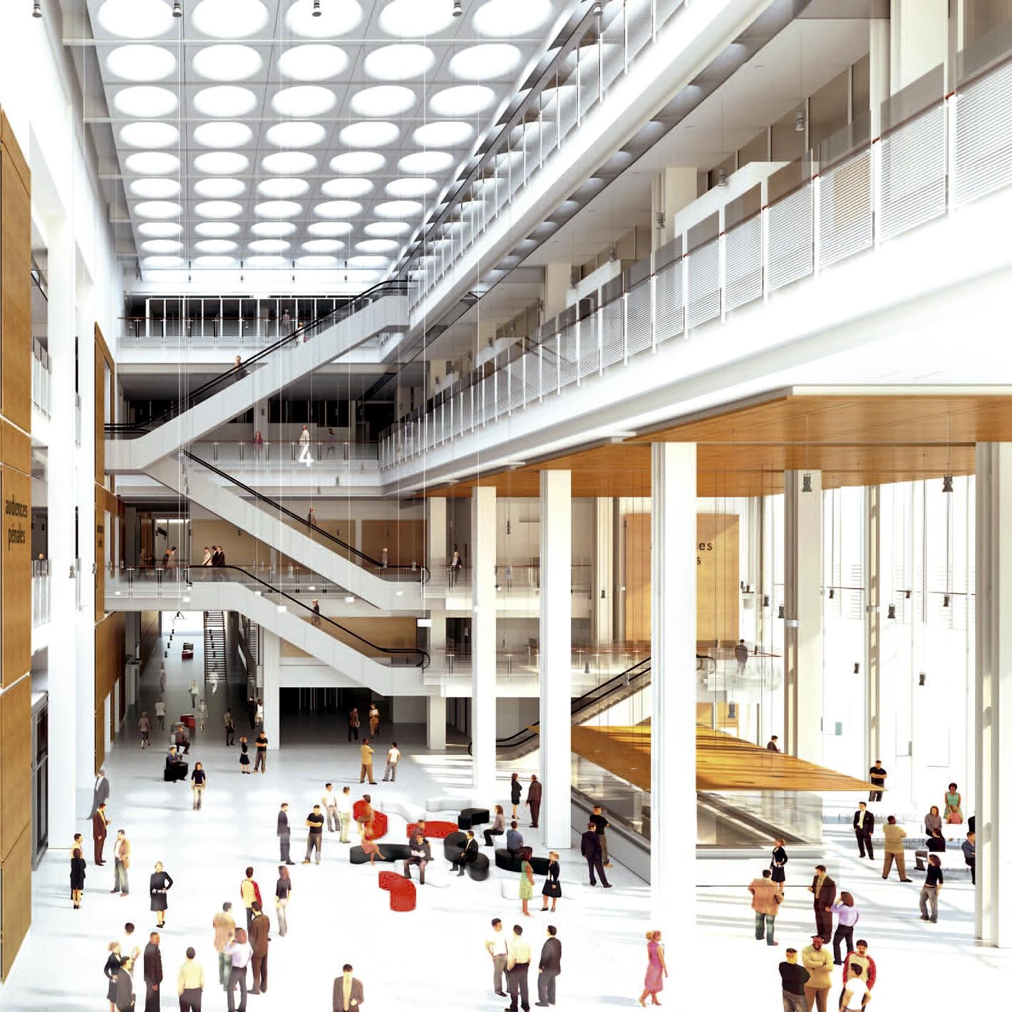 The building’s primary structure, robust and orthogonal, ensures a flexibility over the long term that will be able to accommodate future requirements and any changes in the way the justice system operates.