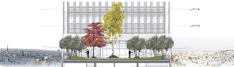 The new law courts will stand 160 meters high, have an internal area of around 100,000 square meters and will accommodate up to 8,000 people per day. The building has a plinth five to eight storeys high, which follows the shape of the site, on top of which stands a tower of three superimposed parallelepipeds, whose section diminishes as the tower gets higher, creating a distinctive stepping profile. The building’s facades are fully glazed. On the three blocks of the tower, fine blades extend the glazing beyond the facade, exalting its verticality.