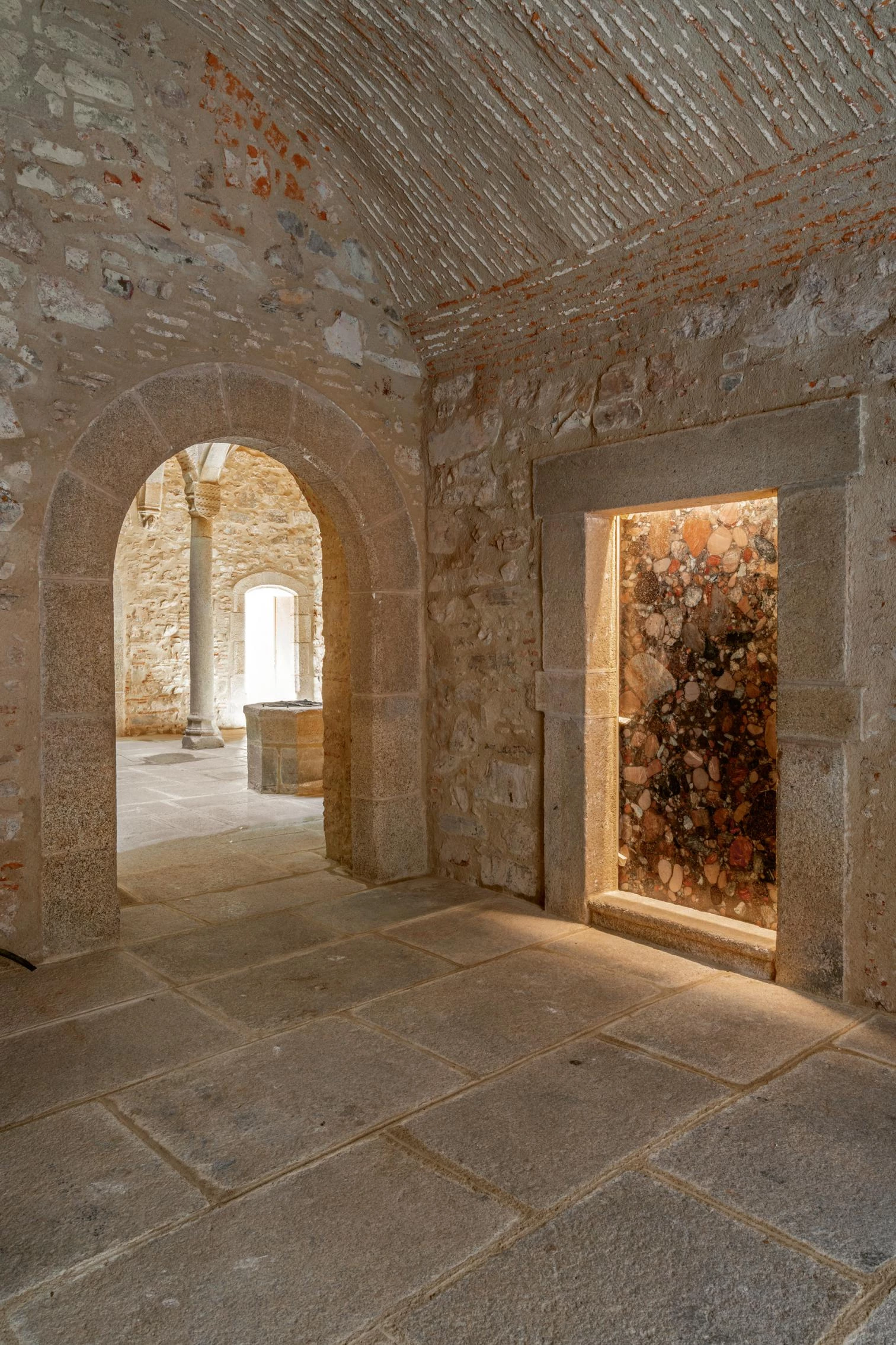 The refurbishment clearly defines a diagonal sequence of spaces that goes from Calle Ancha to Calle San Pedro, passing through the vaulted hallway – which includes a site-specific work by the Portuguese artist José Pedro Croft –, the asymmetrical atrium with a sequence of brick vaults that rest on Doric columns, and the outdoor garden courtyard with a small pond. The project brings the tower back to its original height with the purpose of contributing to improve the profile of the city, especially on Calle Ancha.