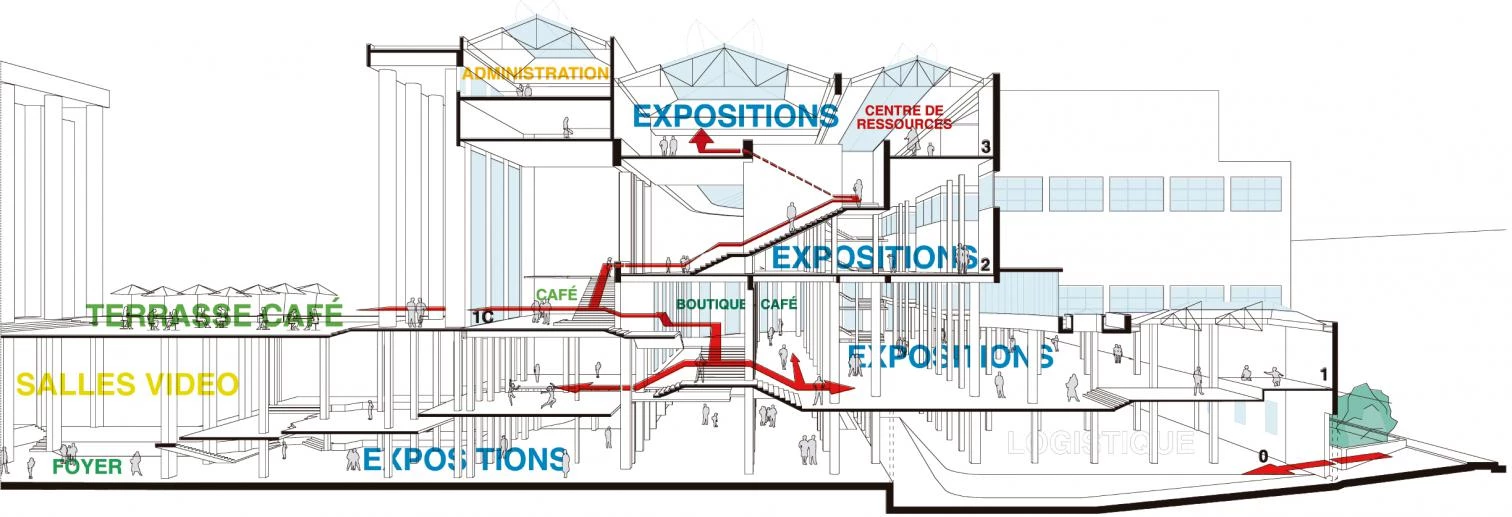 Before the completion of the Centre Georges Pompidou in 1974, the Contemporary Arts Museum was in the Palais de Tokyo, a large building raised on the banks of the river Seine on occasion of the 1937 World Fair. Once the collections had been moved, different transformation proposals were set forth, of which the most solid one was the project to build a Cinema Palace, but construction work for this project was interrupted during demolition.