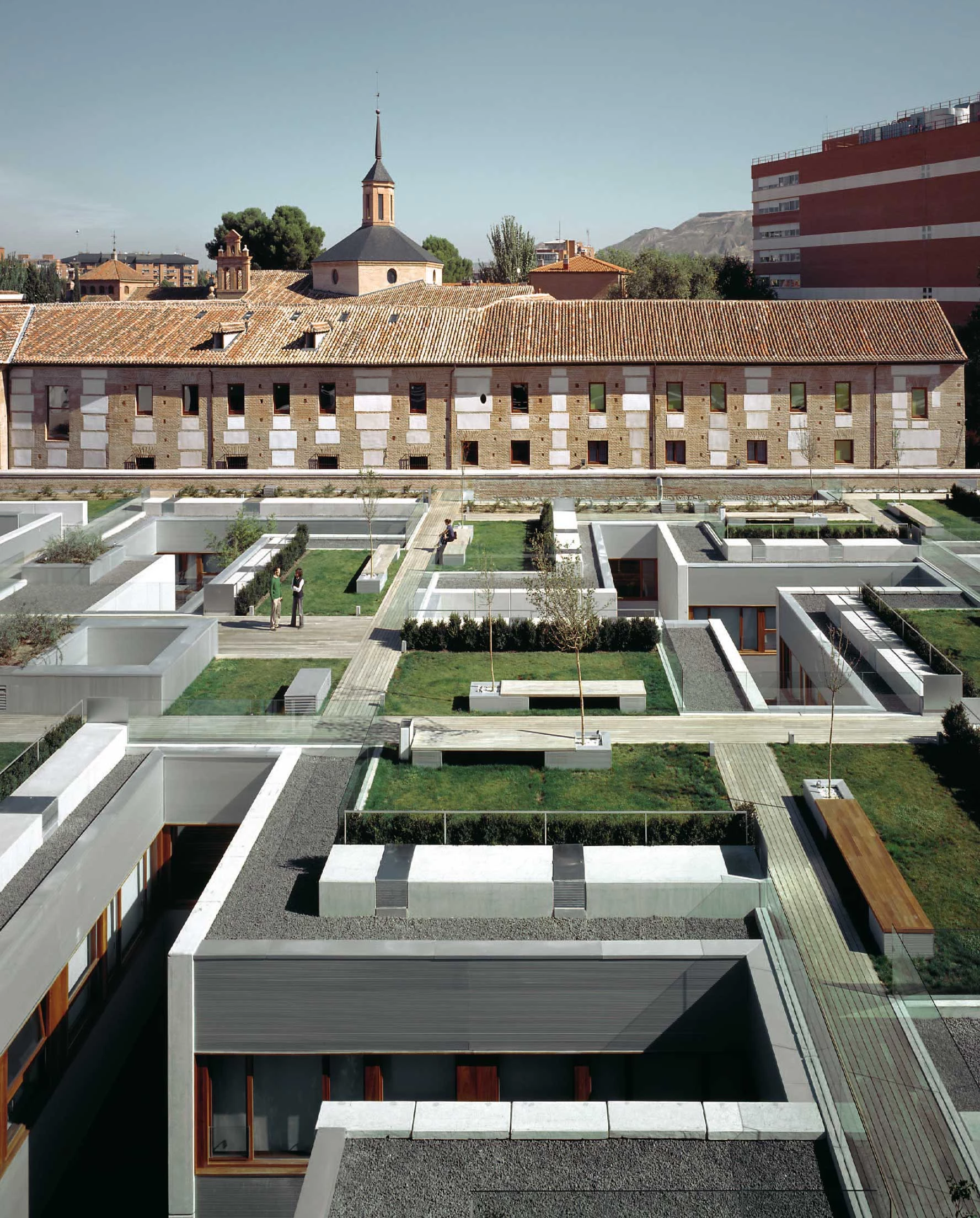 The new ‘parador’ of Alcalá de Henares is conceived as a garden delicately carved out of the old orchard of a 17th-century convent, accommodating a hotel, a restaurant, a cafeteria and halls for meetings.