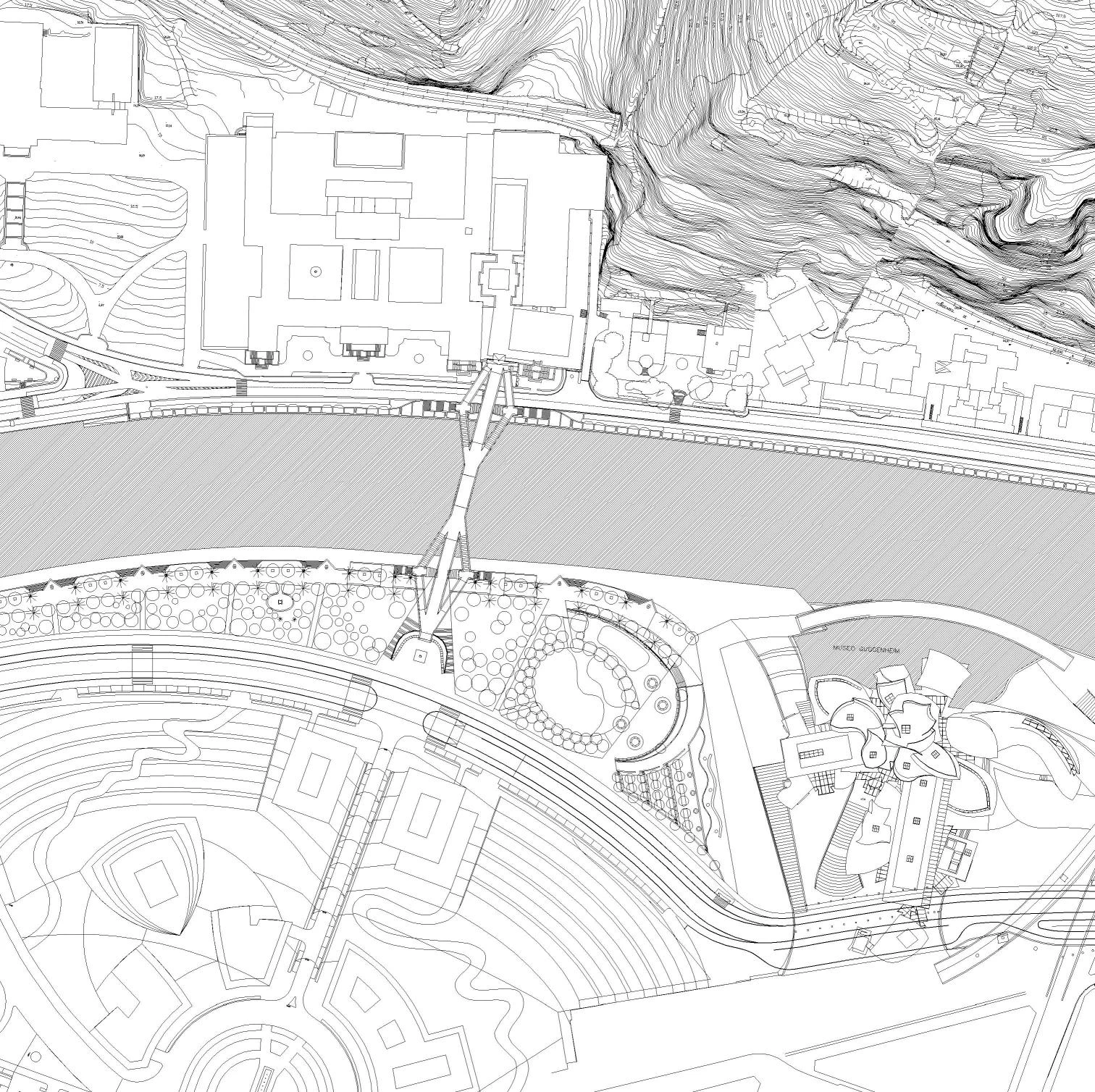 The project had to fulfill two objectives: not to pass unnoticed in a landscape with such important presences as the Guggenheim Museum, and to effectively solve pedestrian itineraries located at different levels.
