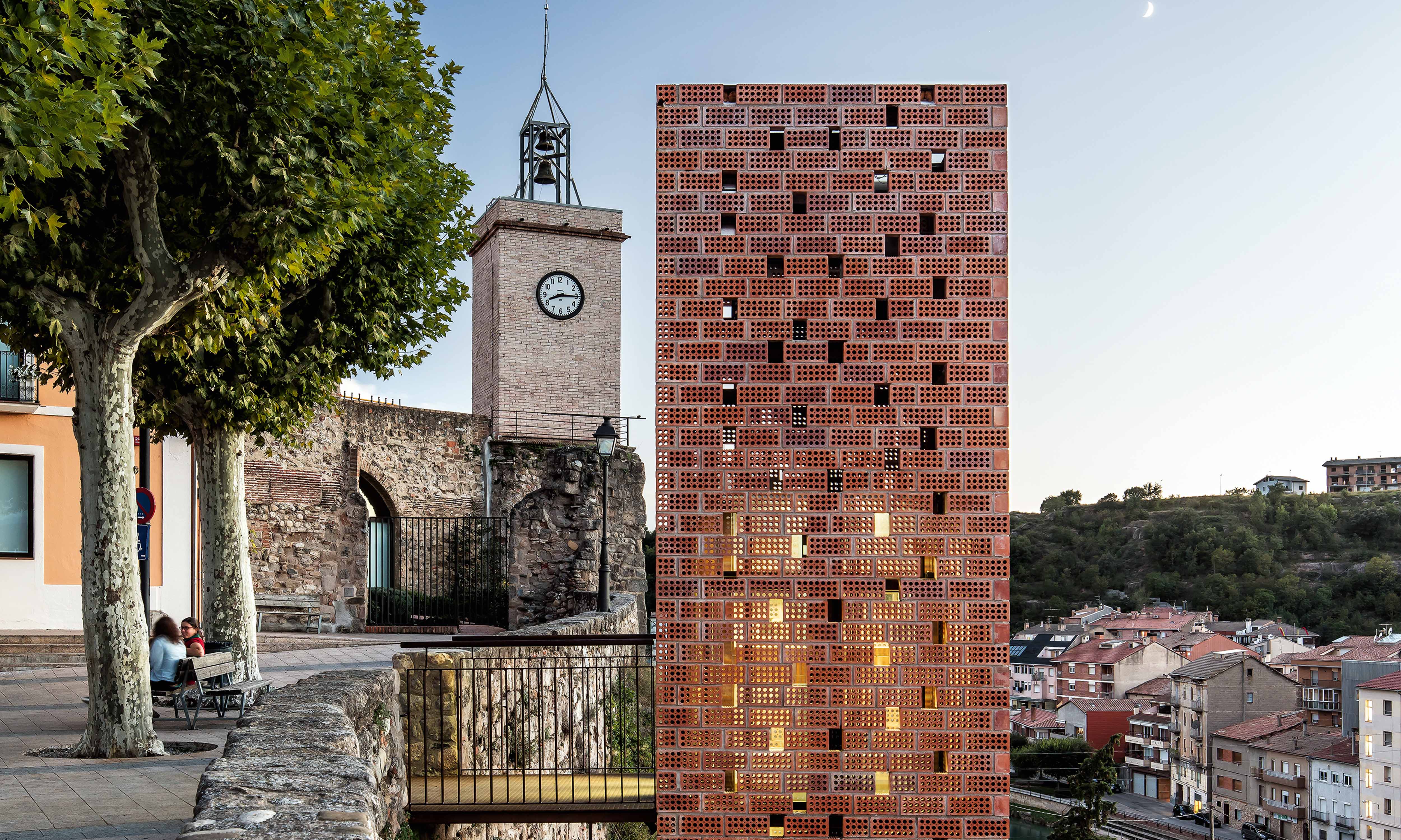 Located on the banks of the river Llobregat, Gironella is a Catalonian municipality split in two: on one side of the river is the town’s gridded extension; on the other is the historical core, perched on a hill, which for accessibility reasons has been diminishing in population. An elevator has been provided to remedy this, connecting the riverbank below to the old quarter above and thus unifying the Gironella’s two parts. Situated in a strategic enclave, the project adopts a material quality that echoes the surroundings, stratifying in accordance with the 24-meter altitude that the elevator box reaches. Whereas the first, lower 8 meters of the elevator shaft, safe in the shadow of an avenue lined with plane trees, are executed with glass, the upper 16 meters are coated with a lattice of perforated bricks lying on their sides, with a finish that echoes the colors and materials of the surroundings and serves to shield the elevator against overexposure to the sun...