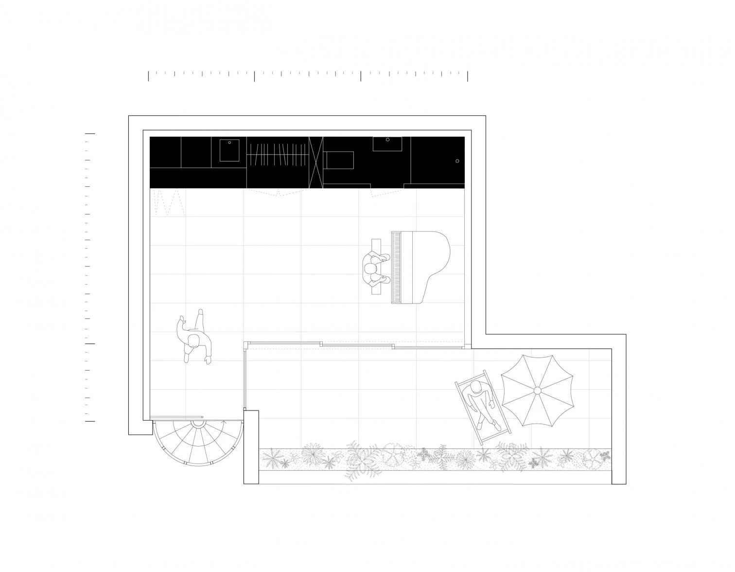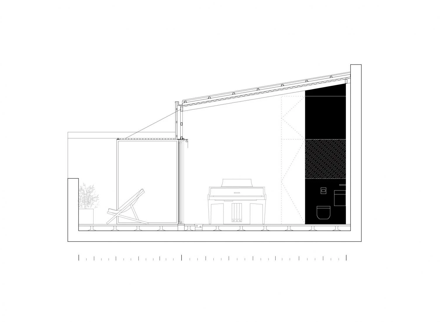 Resulting from the enlargement of an existing unit, this space which is a physical and symbolic setting for artistic production is conceived of as a catalyst for the creative process of an artist whose work combines music, dance, and performance. The final scheme, a simple container that draws from our imageries of artists’ studios (large windows, multipurpose spaces, and a reduced palette of materials), addresses three principal concepts.