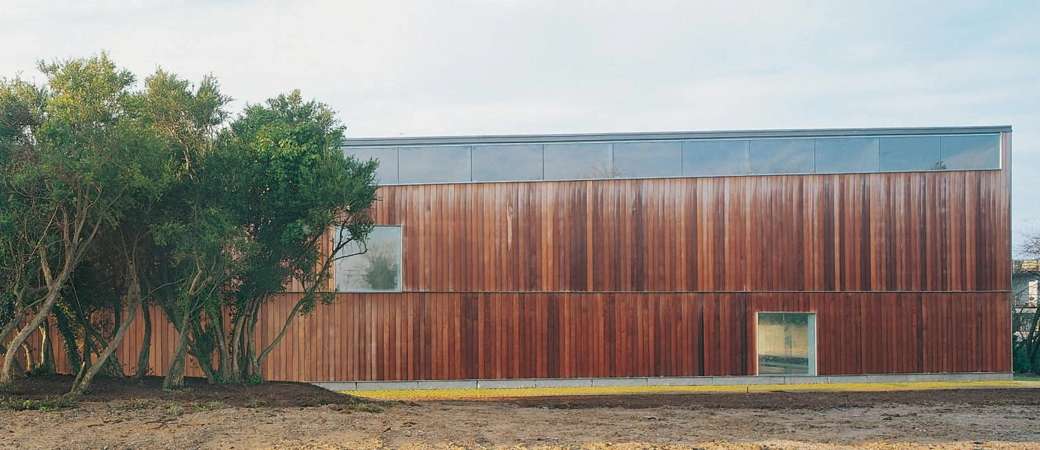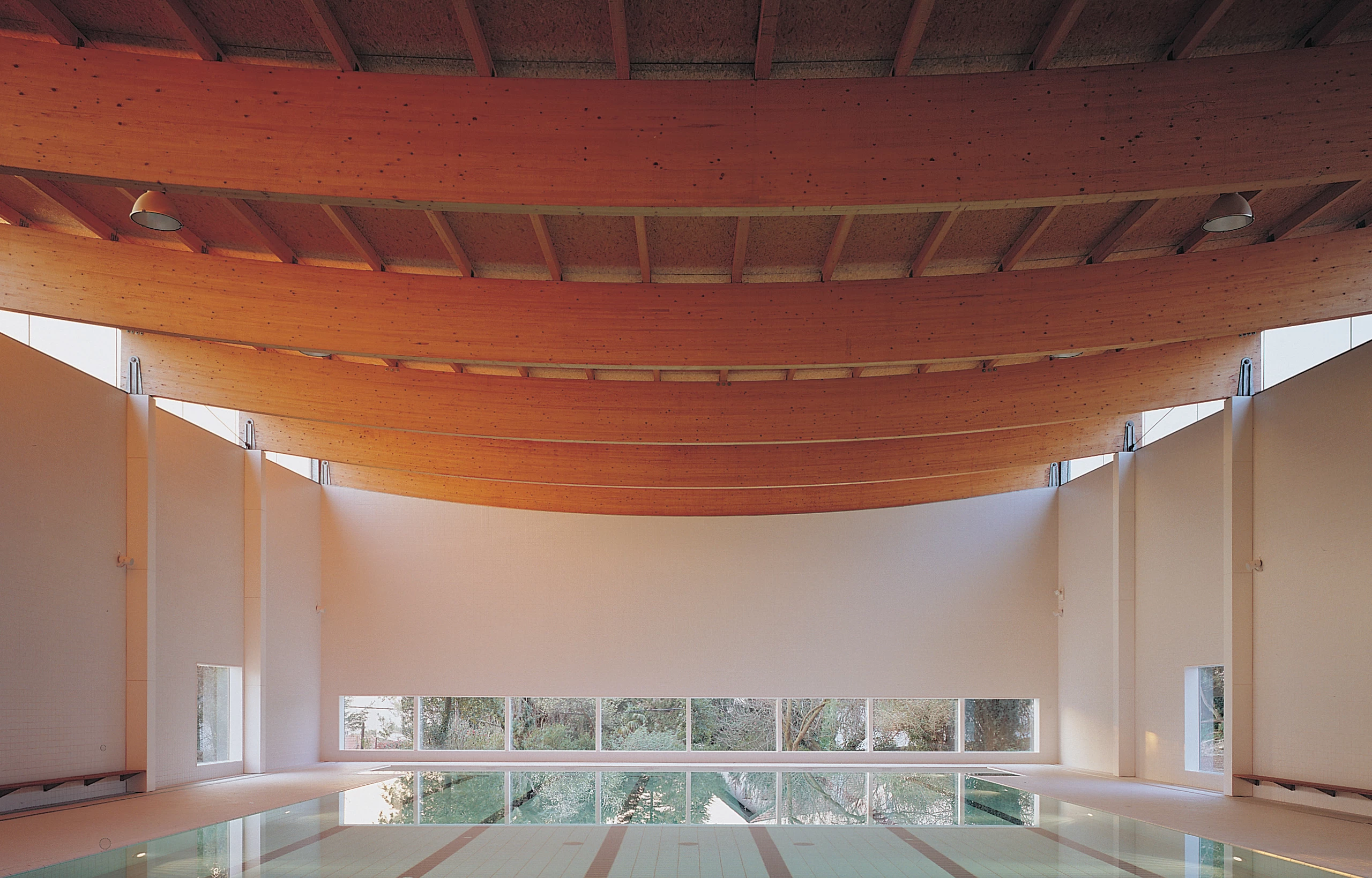 To provide the small rural sites of the area with sports facilities, the Provincial Government of La Coruña launched the Sports 2000 program, by which swimming pools and gymnasiums have gone up in phases from a series of prototypes that each City Council could choose. Thought out as a generic solution for an area with no particular features, the design selected by the municipalities of Oleiros, Melide and Fena indirectly points at the rain as the common aspect of Galicia’s landscape. A warped roof shaped as a large gutter is proposed as the identifying feature of the project, which on the other hand, is characterized by its compactness and its capacity to adapt to the different urban circumstances.