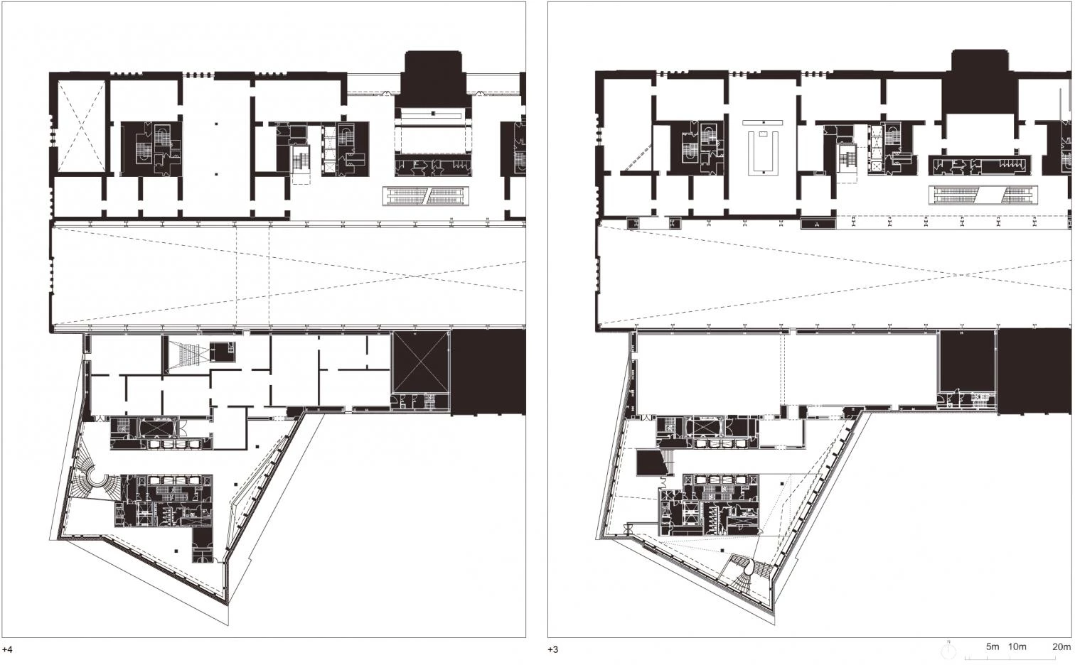 The most distinct element of the extension is a pyramidal tower whose geometry addresses at once the urban context and the existing building to which it is adhered. Underneath it are the Oil Tanks, which have already been transformed into galleries for live artistic activities. The tower has rooms of different sizes, as well as galleries with less conventional geometries and educational spaces. Aside from doubling the exhibition areas, the extension offers a variety of public spaces for relaxation and reflection, for activities, group learning and private study. These spaces are spread over the tower and linked by a generous public circulation system rising through the building.