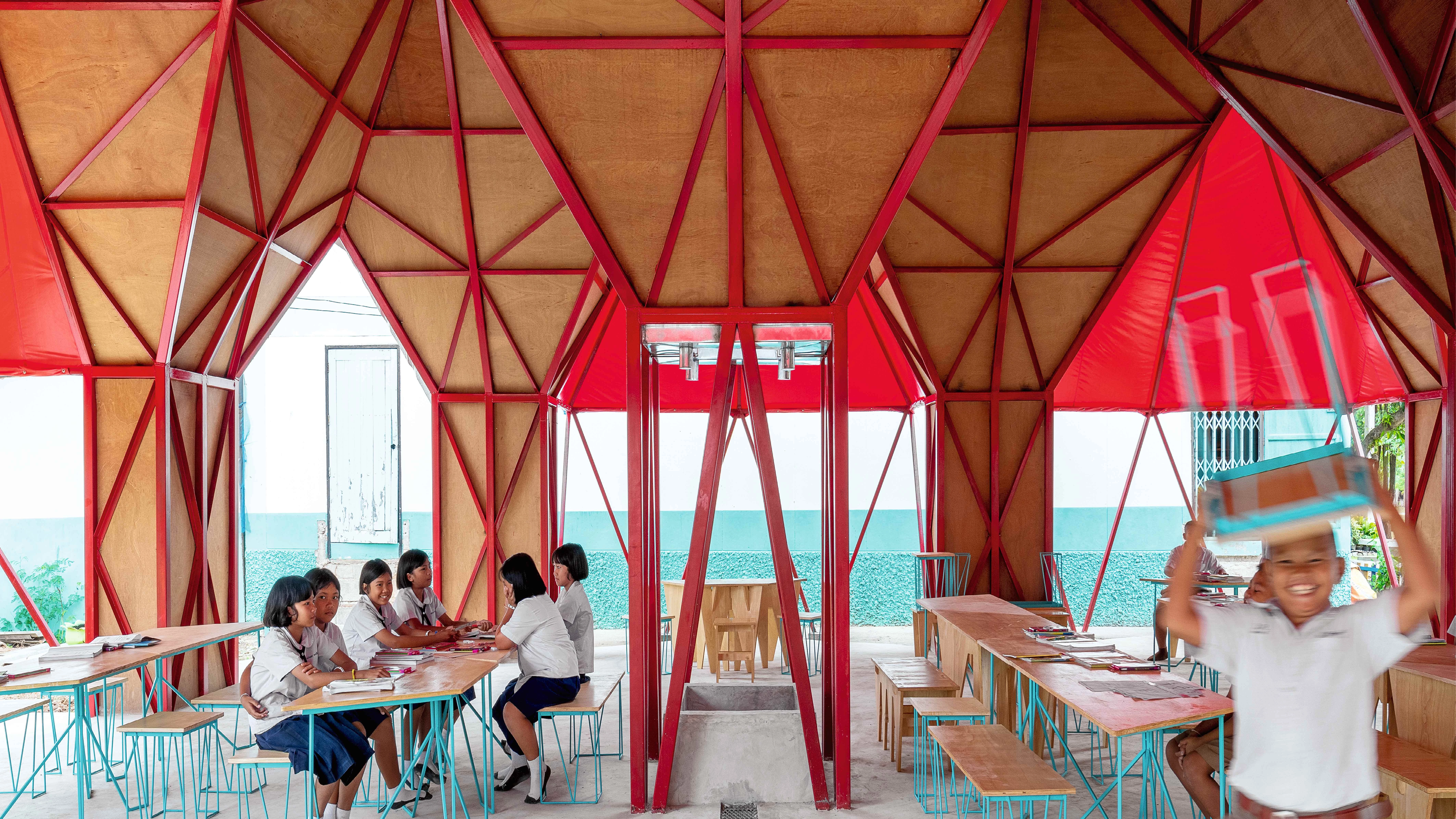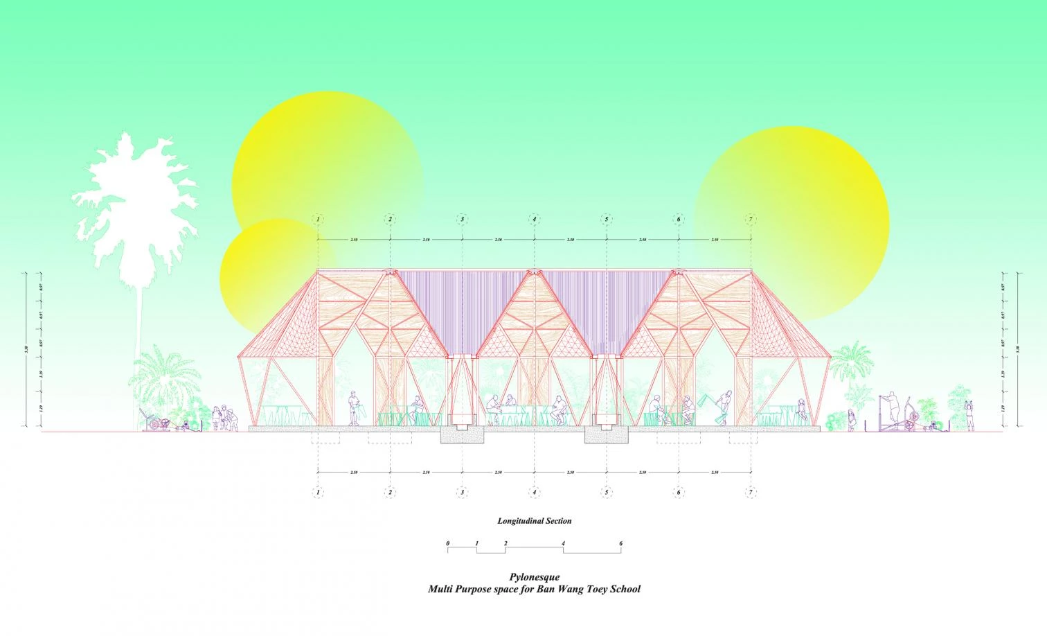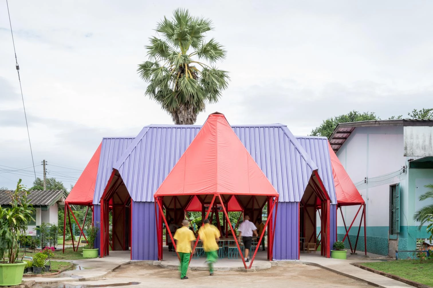 The project addresses three principles: use of construction techniques and industrial materials that can be executed with traditional methods; flexibility in the program to provide functionality, play, and aesthetics; and climatic sensitivity.