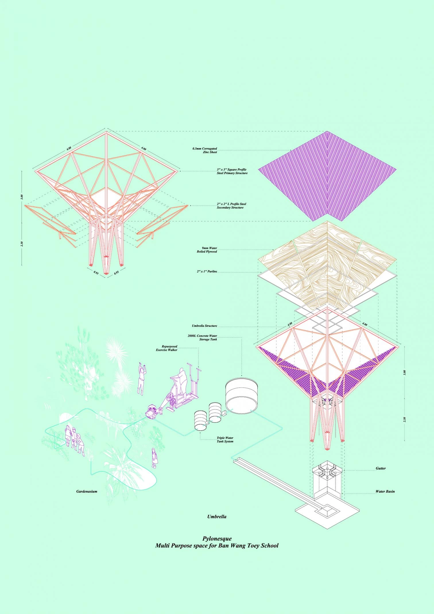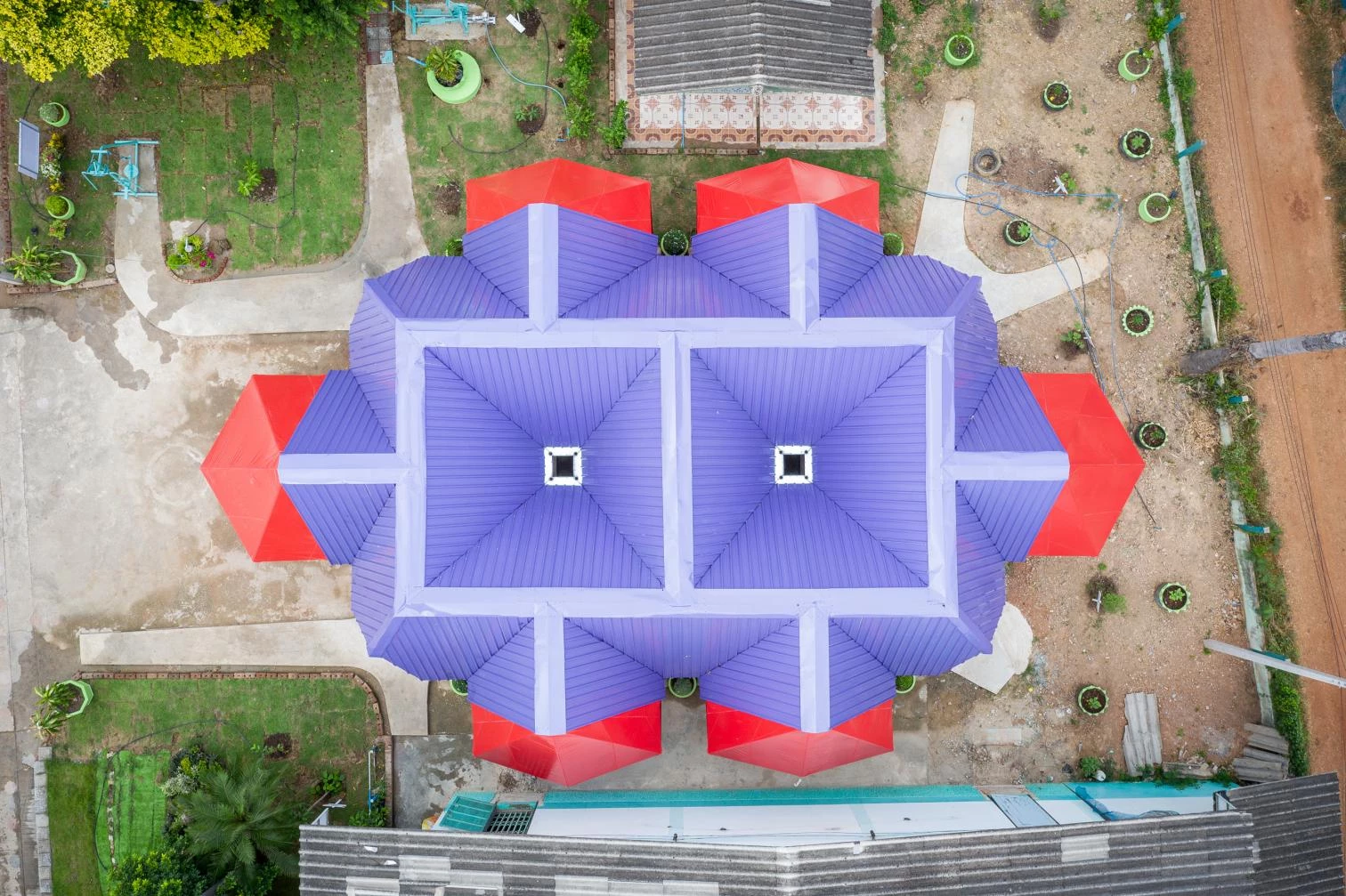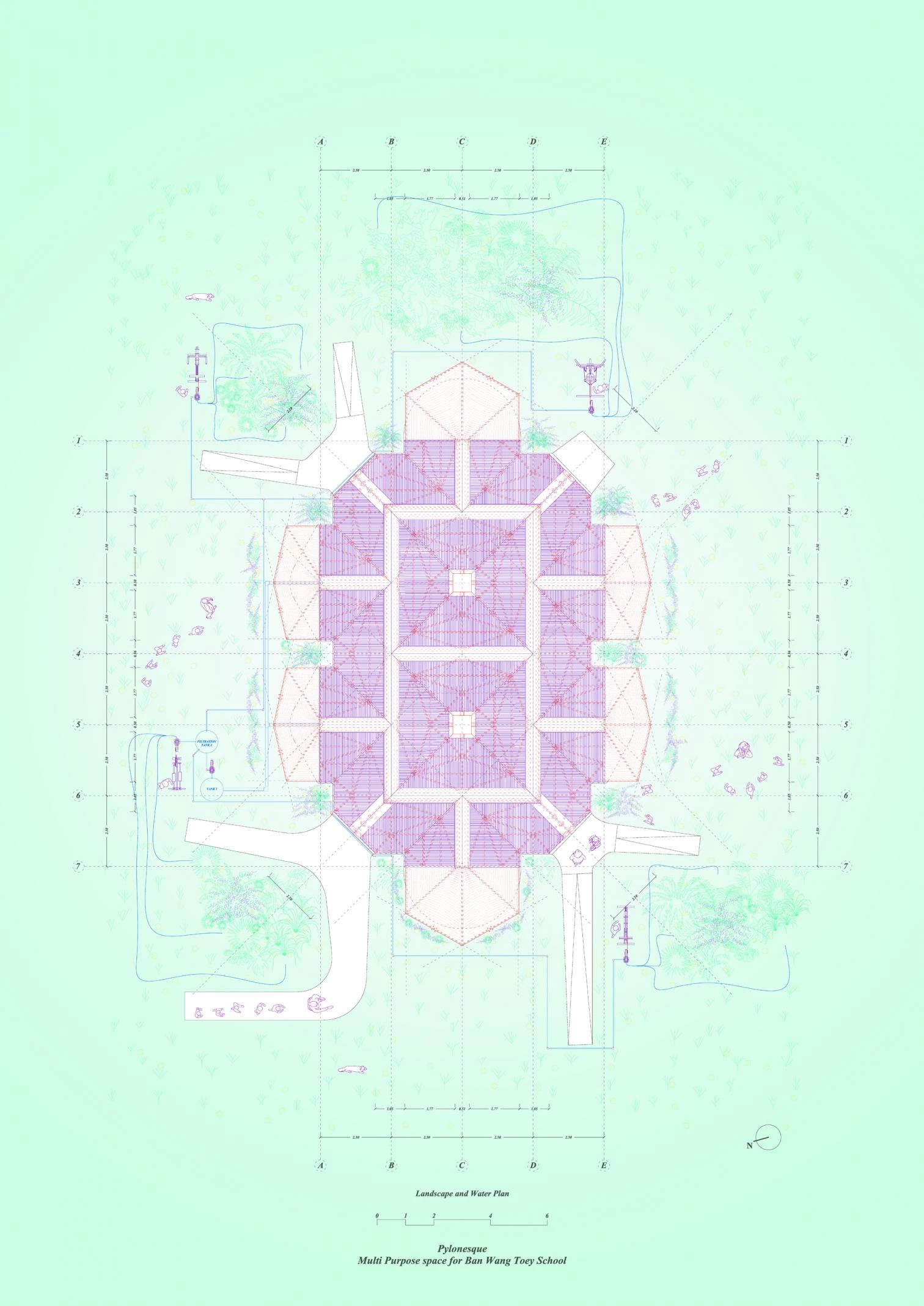 The project addresses three principles: use of construction techniques and industrial materials that can be executed with traditional methods; flexibility in the program to provide functionality, play, and aesthetics; and climatic sensitivity.