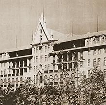 The existing reinforced concrete structure did not pass the load tests required, so it was demolished and rebuilt. Though it might seem peaceful, converting the ruins into a hotel was a complex process because it was necessary to follow current regulations and to add all the installations required for a contemporary building. The two large halls of the main floor are transformed into a bar and restaurant, with period furniture and decoration. The ground level – where the laboratories, support areas, and the morgue used to be – now houses a thermal baths complex with a swimming pool, sauna, spa, hammam, and massage rooms.