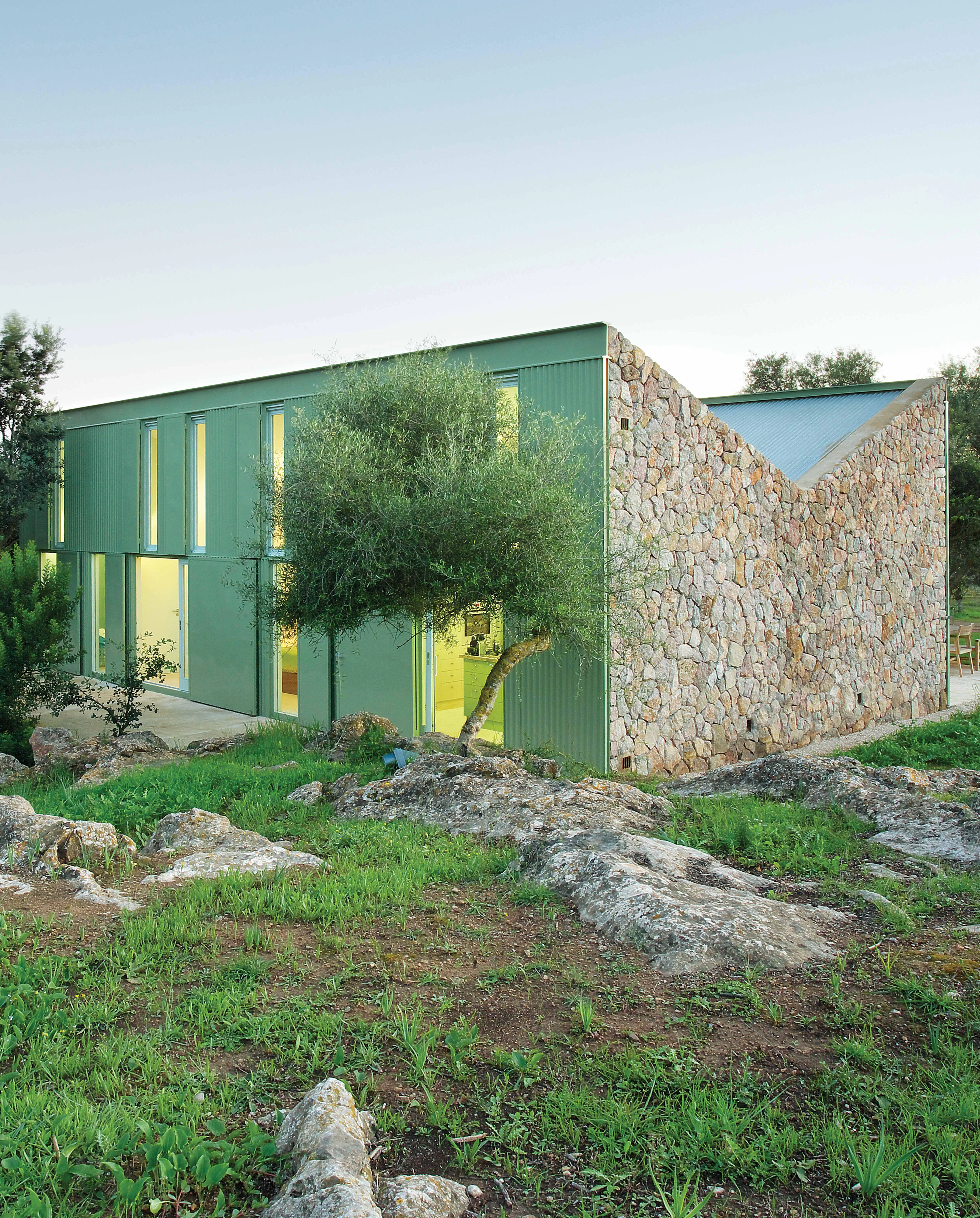 Standing on a small rocky hillock that offers panoramic views of the valley, the mountains, and the town of Artá, this second residence becomes a privileged observatory of sunrises, sunsets, and storms. The project consists of adapting the traditional way of using a shepherd’s refuge to the contemporary dwelling. The approach symmetrically replicates the original volume in order to maintain the typological and technical operating conditions. The dry-built facades encourage a measured and voluntary dialogue with the local climate. See, illuminate, ventilate or sunbathe are operations that are differentiated into two families of hollows and gates that give the construction an ambiguous and enigmatic character. The interior reproduces the primitive scheme of three rooms (animals, shepherds, fodder) in two orientations: kitchen, bedroom, bathroom to the north; and dining room, living room, study to the south. Each room contains one single large object – table, sofa, desk, bath, bed, and kitchen island – that defines its use and is replicated in another exterior family that forms a complete outdoor dwelling – gazebo, bench, table, shower, hammock, and barbecue...[+]